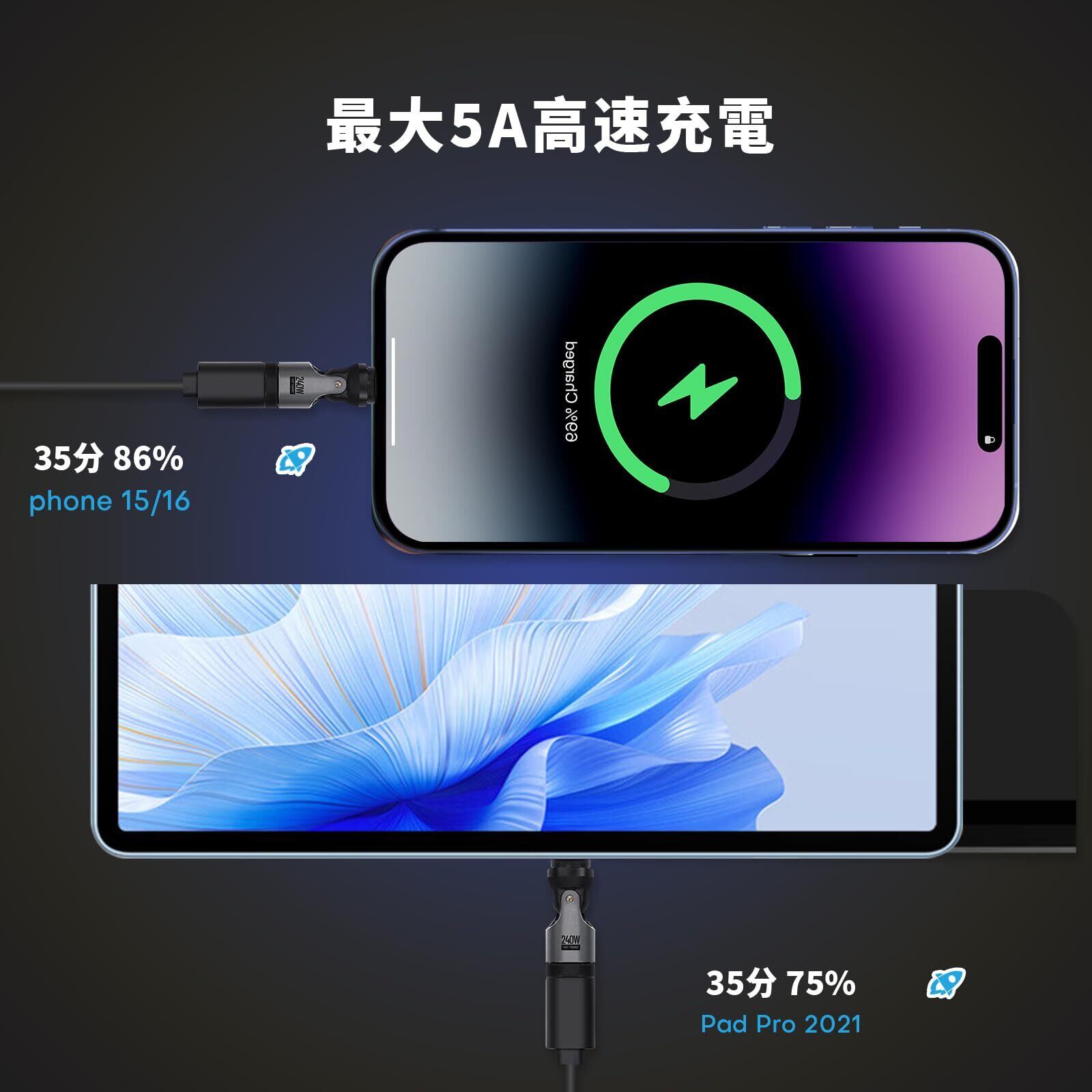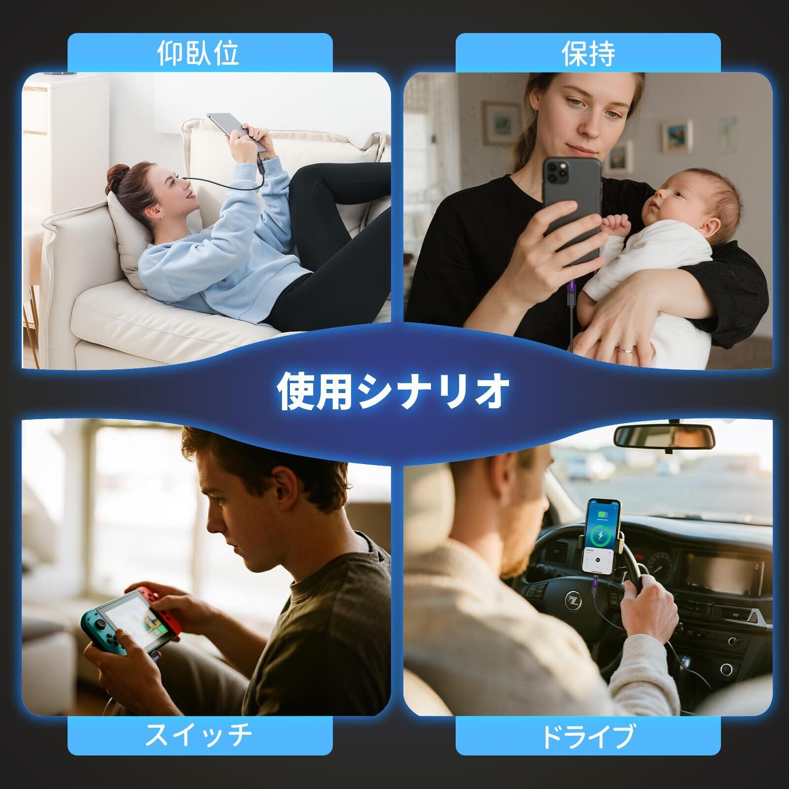 90°、180°、360°の回転が可能なマグネットコネクタを採用していますので、どんな角度でもラクラク接続できます。ゲームや動画視聴中でも、コネクタの干渉を気にせず使用でき、快適な操作が実現します。