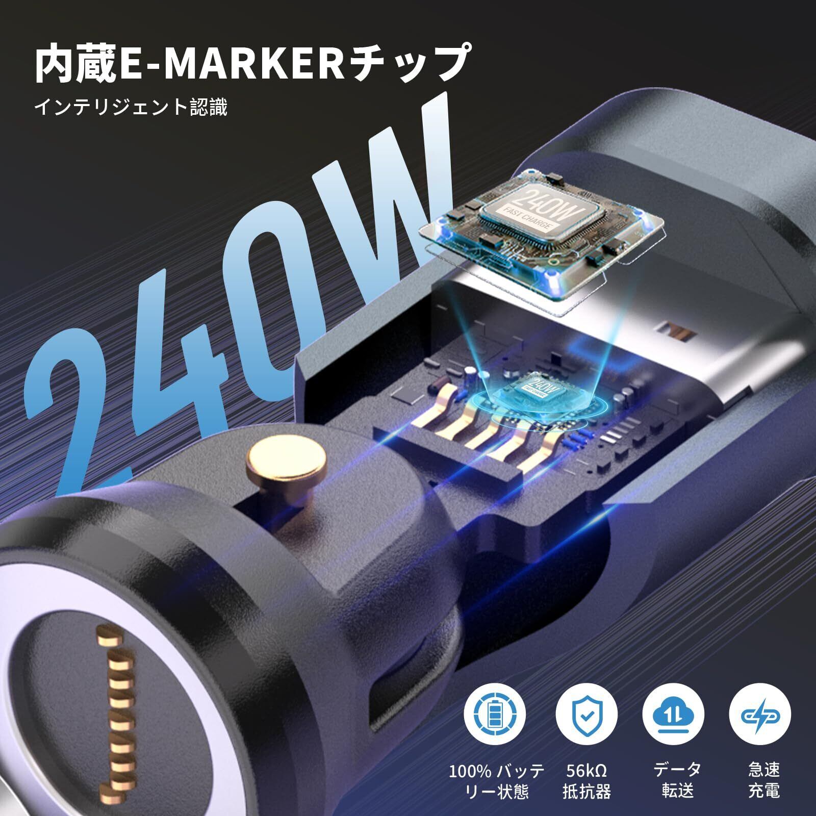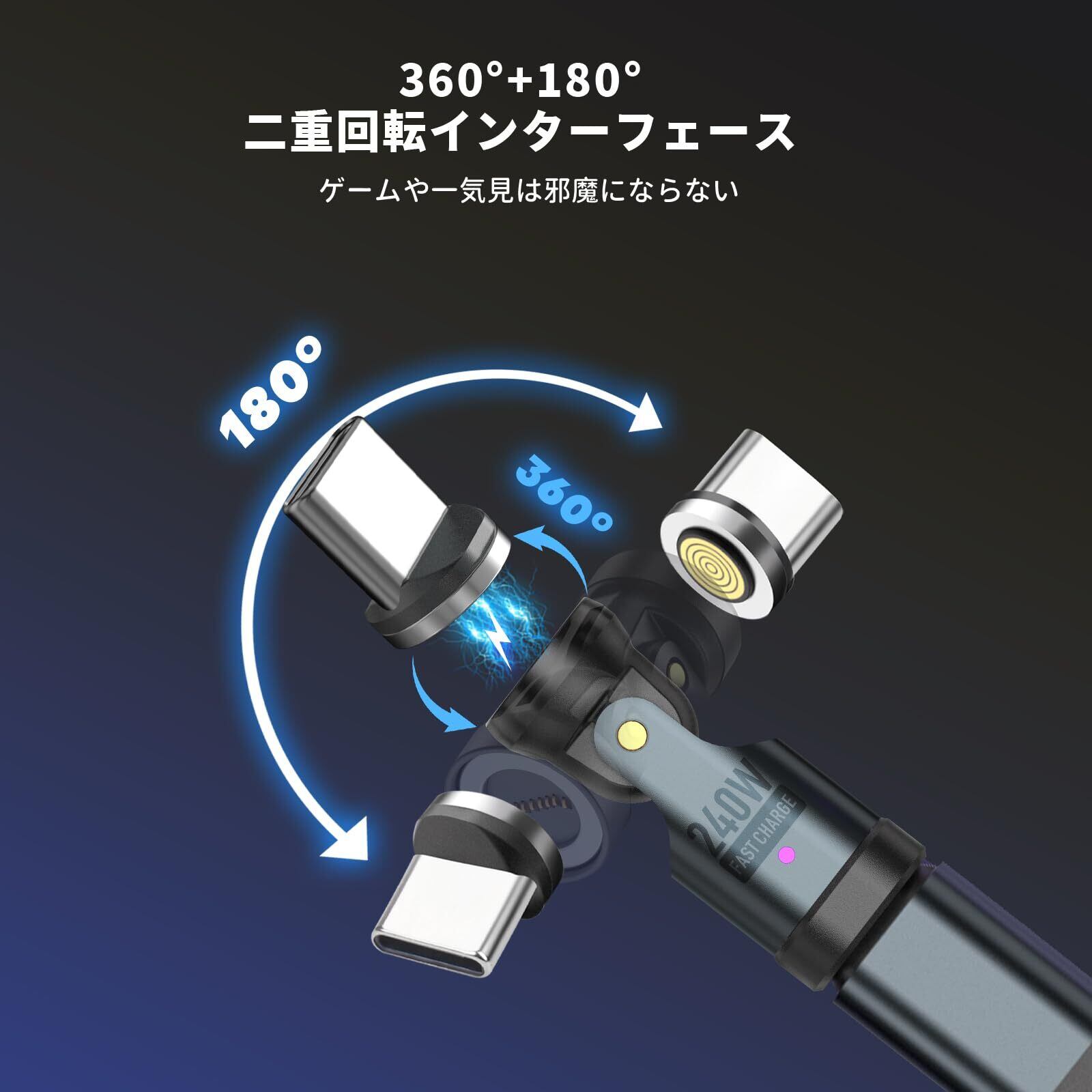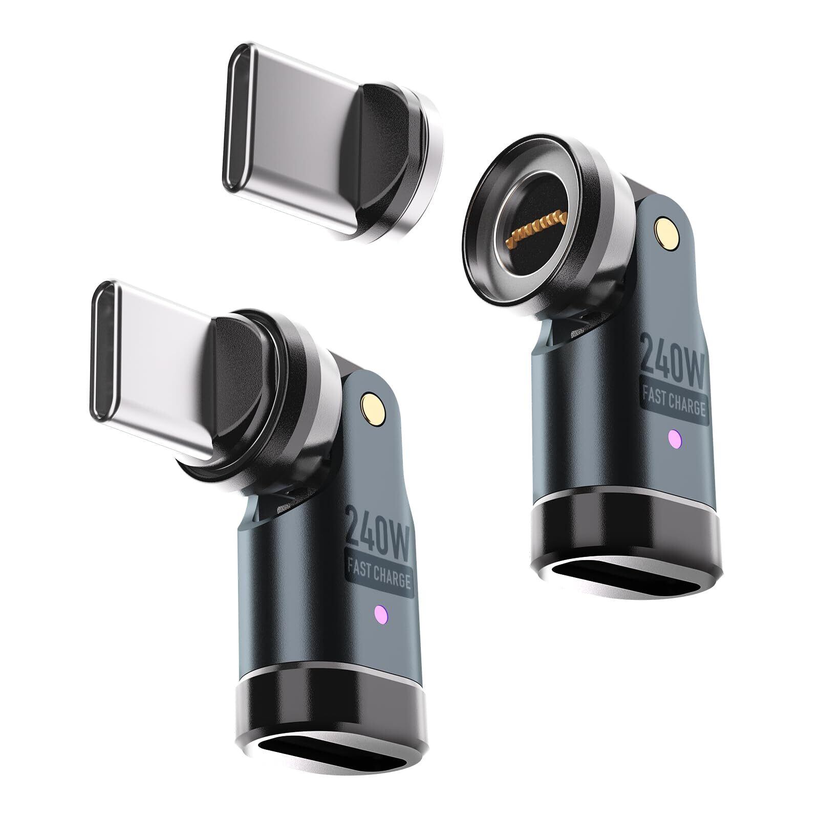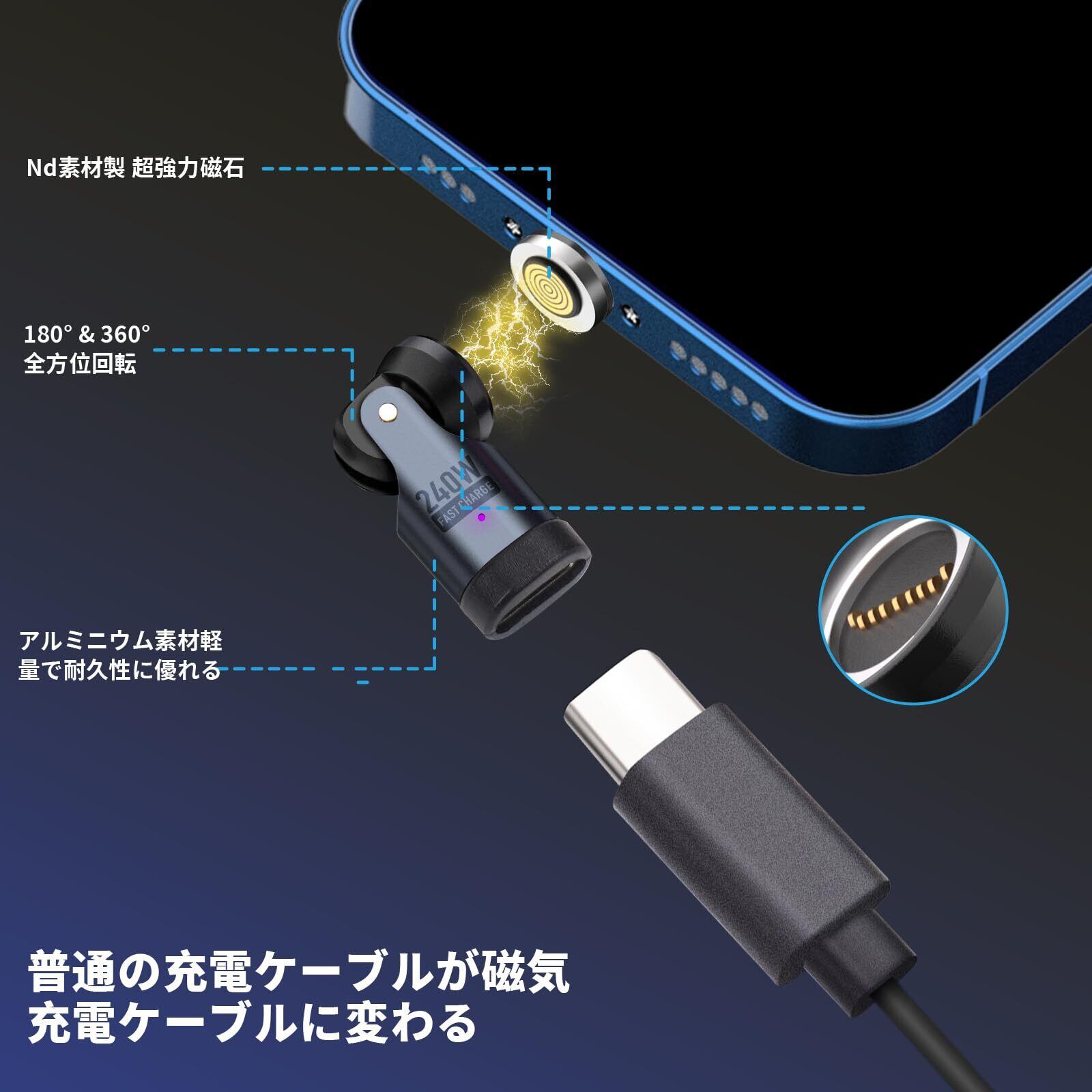 TYPE C to TYPE C マグネット変換アダプタ USB-C 240W 9pins 普通Type-CケーブルをマグネットタイプCケーブルに変換90/180/360度回転5A超急速充電USB2.0 480Mbpsデータ転送