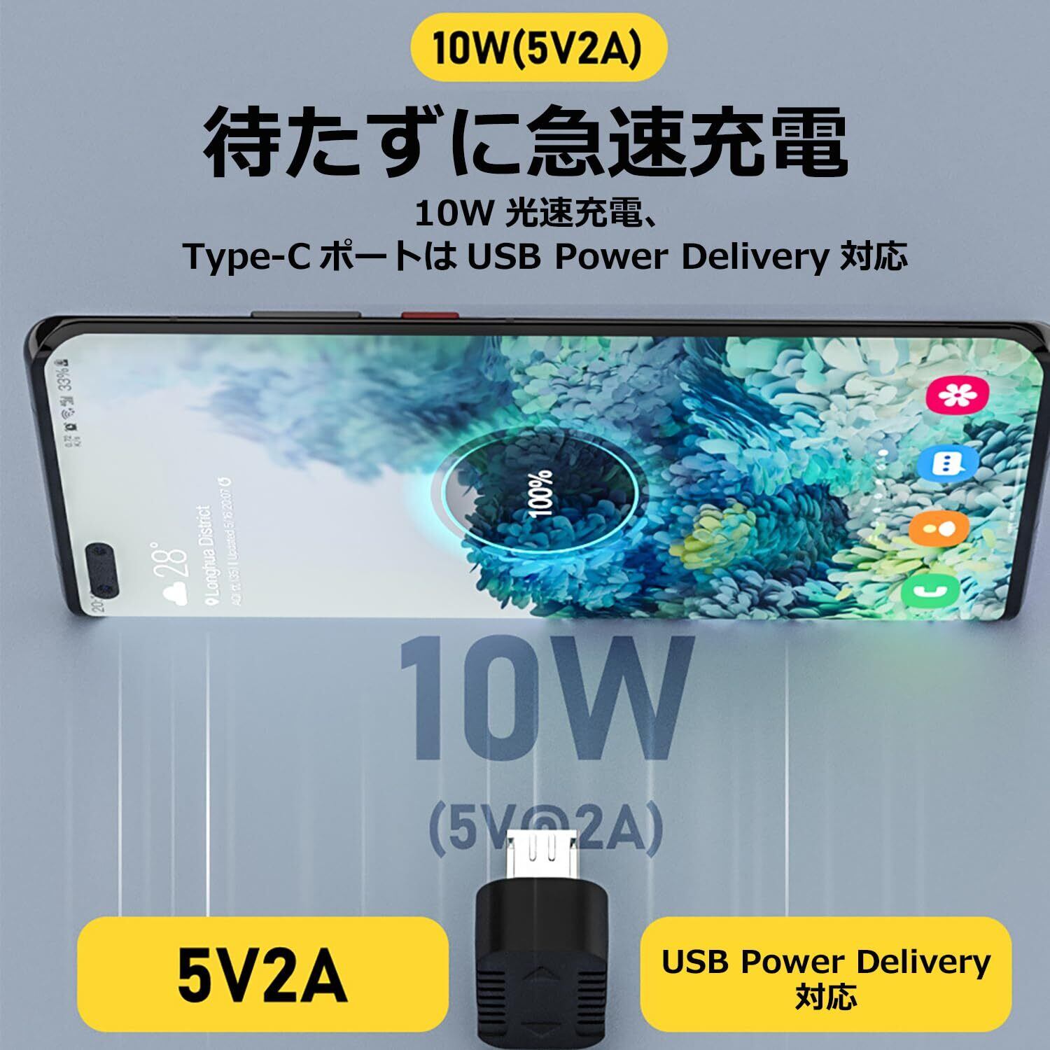 【PD急速充電に対応】 10W(5V2A)の高速充電。Type-CポートはUSB Power Deliveryに対応し、ノートPCやスマートフォン、大容量モバイルバッテリーなど様々なデバイスを素早く充電します。