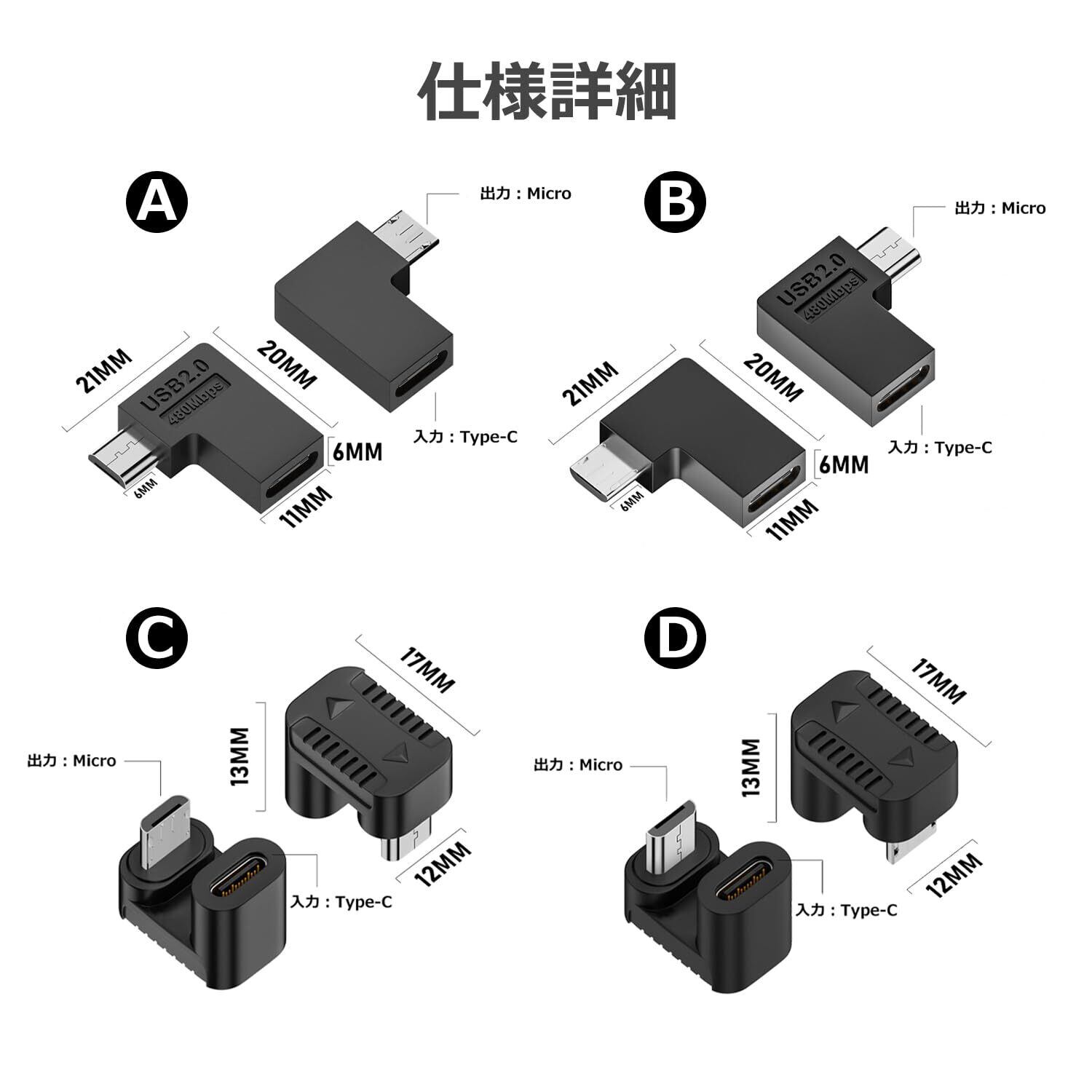 安心の日本企業 USB-C to Micro-USB 変換アダプタ オス メス 全4種 MicroUSB 480Mbps PD 10W(5V2A) 高速充電 USB2.0 U字 L字【レビュー信頼 】BC