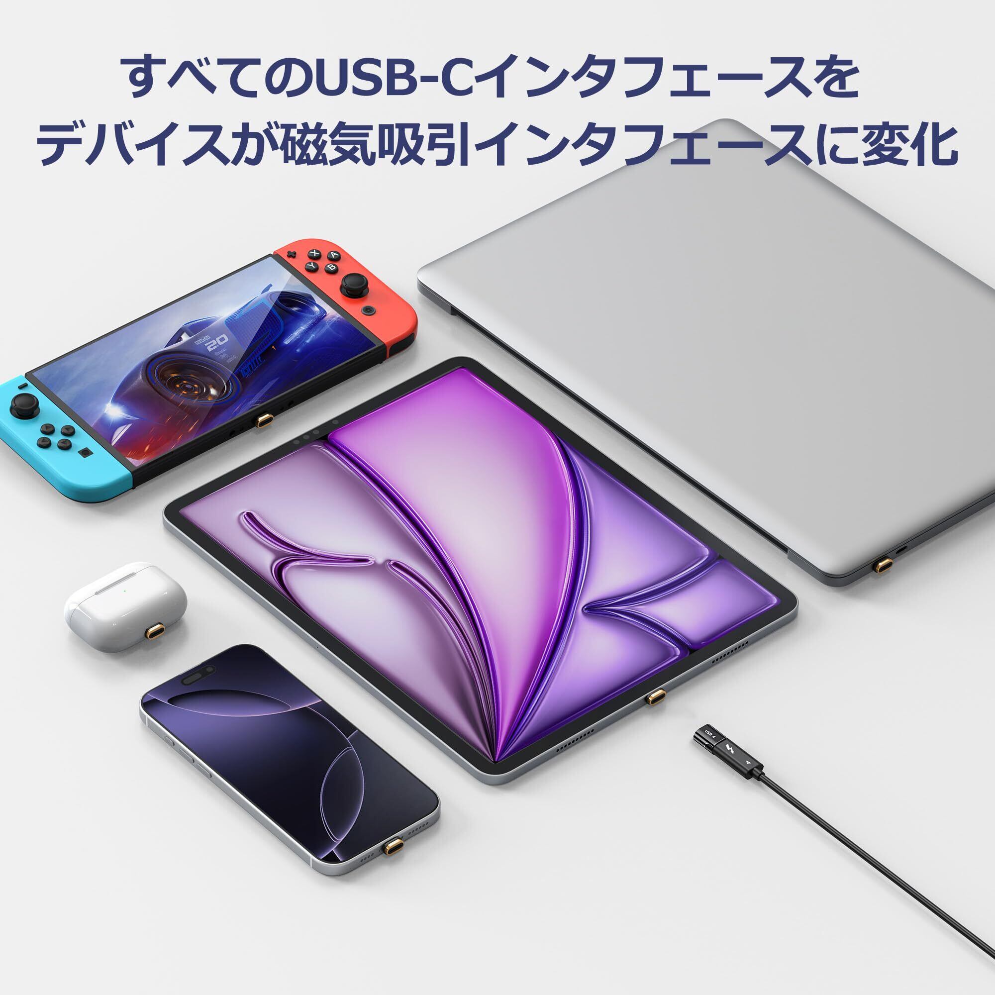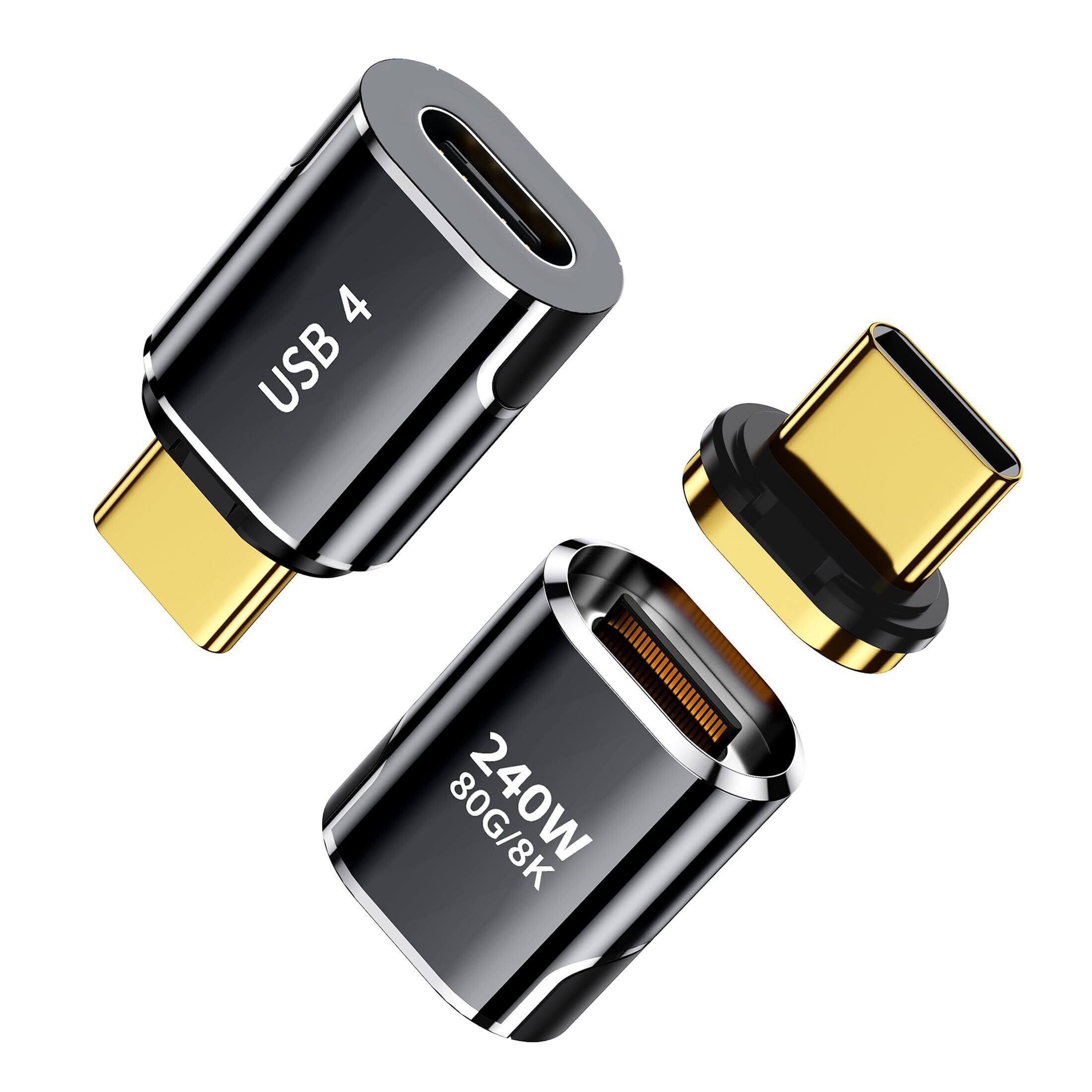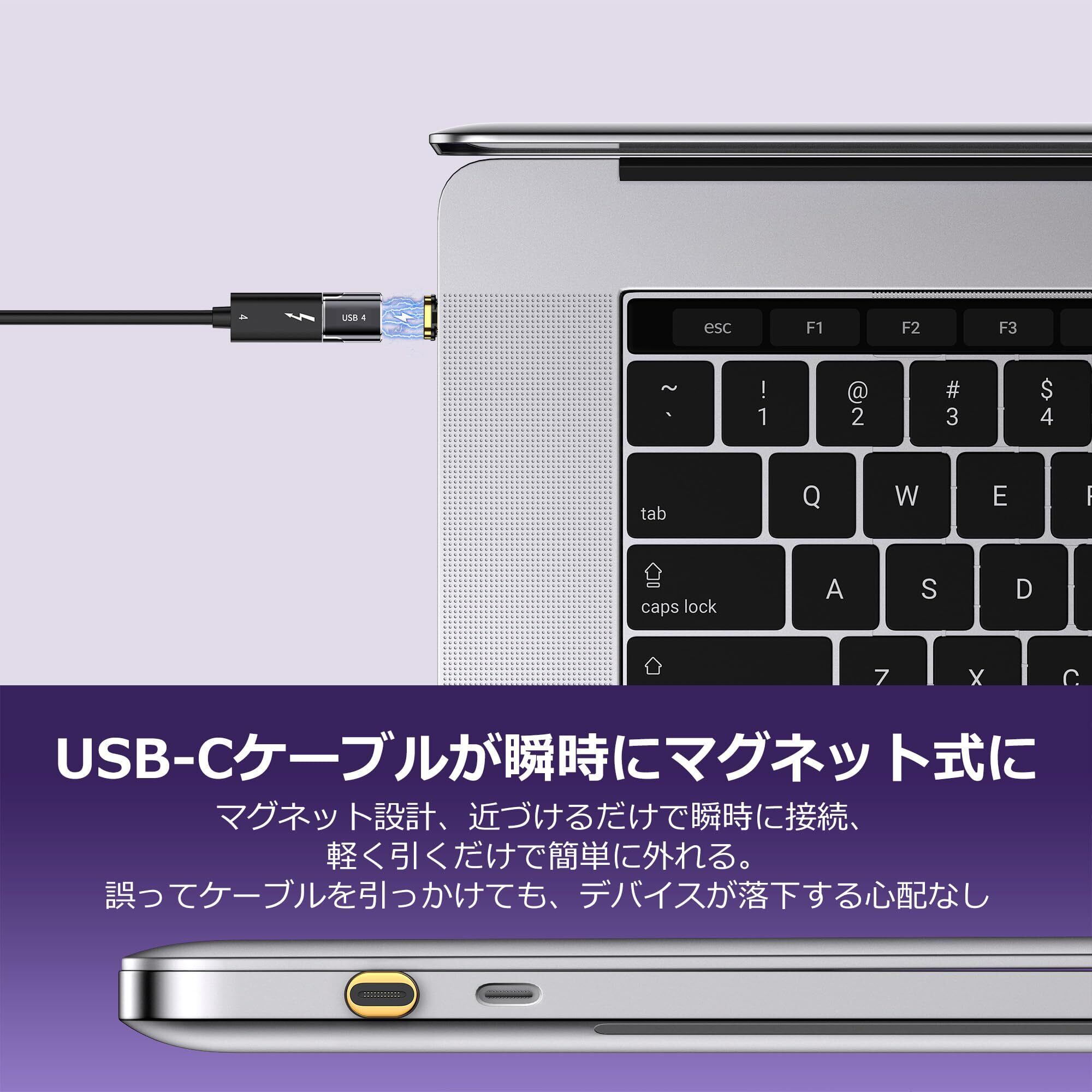 MUXER USB C マグネット アダプタ、80Gbps 高速データ転送 USB4 V2 対応、240W PD急速充電、4K 120Hz / 8K 60Hz HD映像信号転送、Thunderbolt5 対応、USB-Cデバイス対応 (黒色アダプタ2個)!