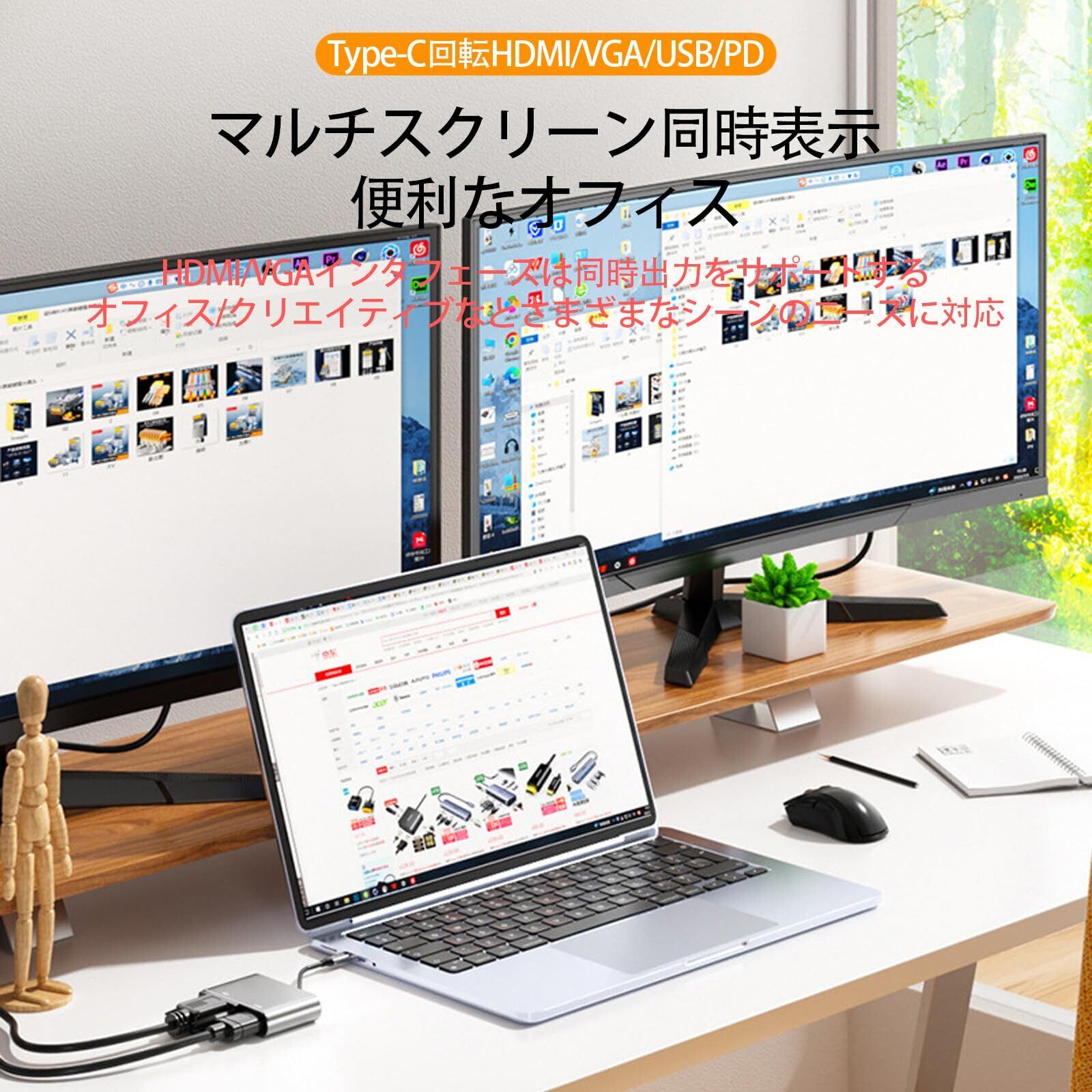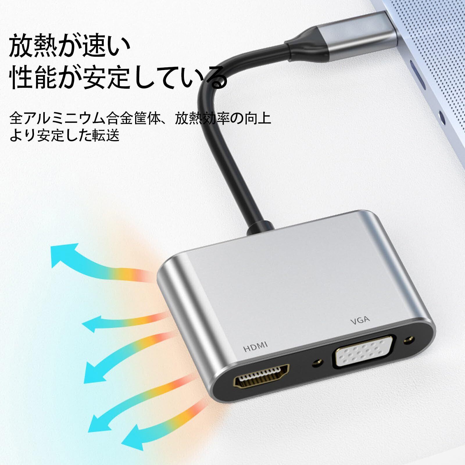 【USB Type-C HDMI vga変換アダプタ】PC ノートパソコン の 映像、映画、音声、動画、写真をTV テレビやモニター、プロジェクター などの外部 ディスプレイに出力するためのUSB Type-C HDMI変換アダプタです。ディスプレイモードと拡張モードなどが行います。動画、プレゼン、会議、ゲームに大活用大便利になる。当商品がusb typec hdmi vga変換アダプター、パソコンとかネットパソコンなどの入力機器が是非usb typec 端子付きしなければなりませんでした。
