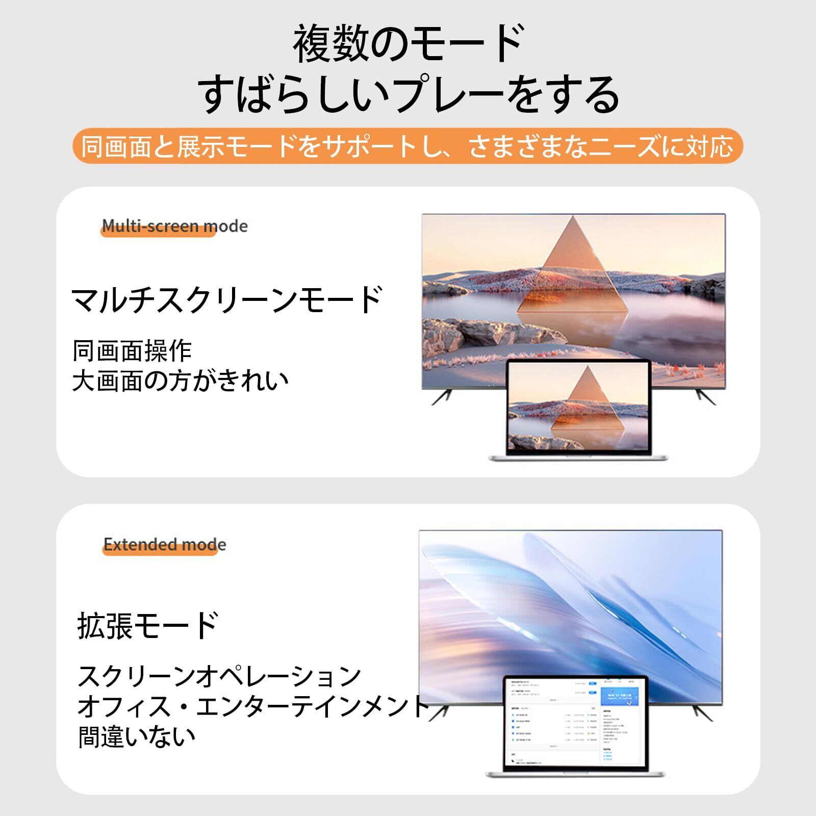 【4K高画質出力】HDMI とVGAポート同時に出力することは1080P可能です。HDMIのみ出力する場合:最大4Kx2K@30Hz、VGAのみ出力する場合:最大1920x1080@60Hz。鮮やかな4K動画の配信や高速データ転送ができます。