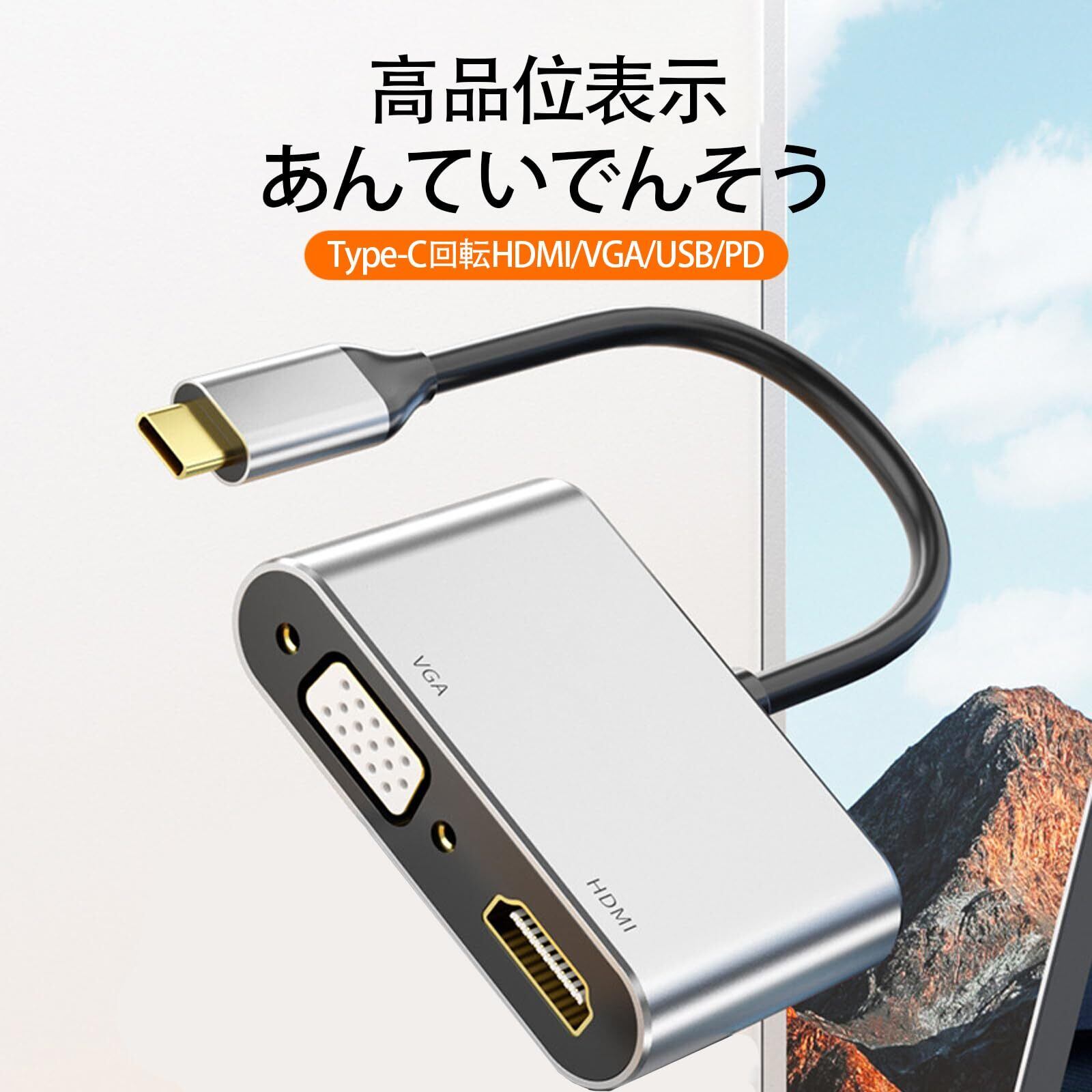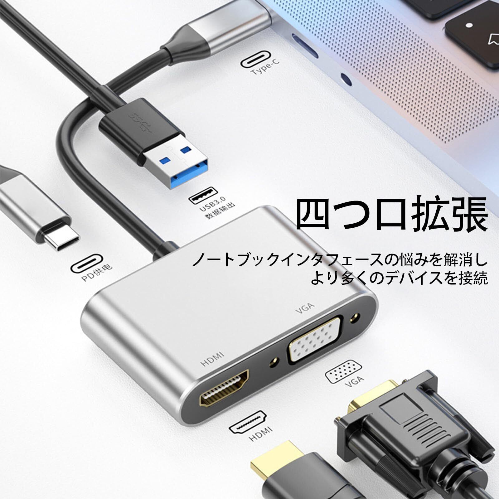 LUYING USB Type-C HDMI VGA 4-in-1 アダプタ | 4K HDMI映像出力 + VGA映像出力 + PD急速充電 + USB3.0高速データ伝送対応!