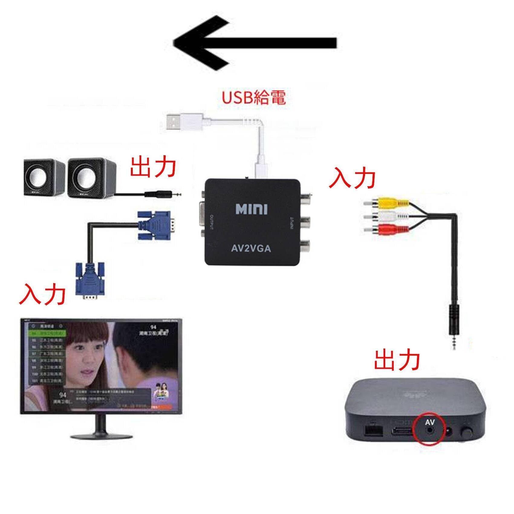 RCA→VGA変換器 AV→VGA変換 USB給電 音声 AVコンバーター 3色ケーブル