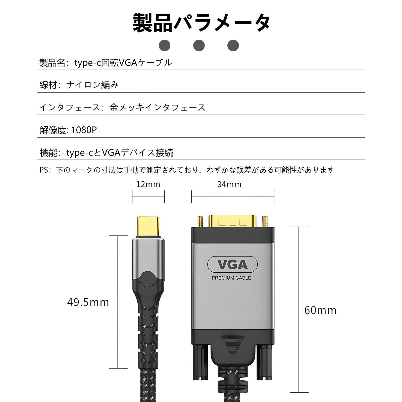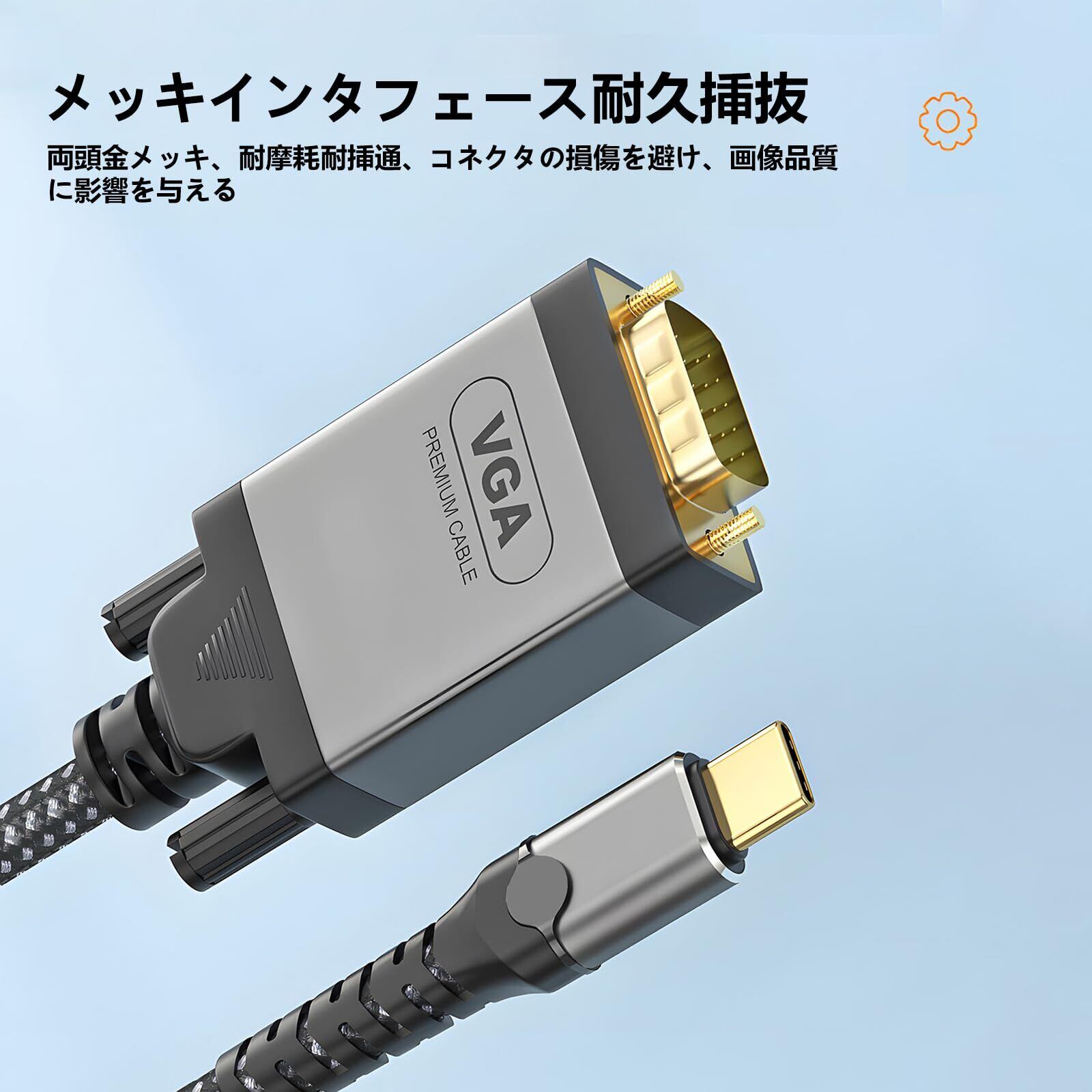 USB-C to VGA ケーブル 1M Type-C 変換アダプタ | 1080P対応・金メッキ接続・最新款アップルデバイス/MacBook Pro/Air 2023/iPad Pro/iMac/S23互換 プロジェクター/モニター/テレビ接続!