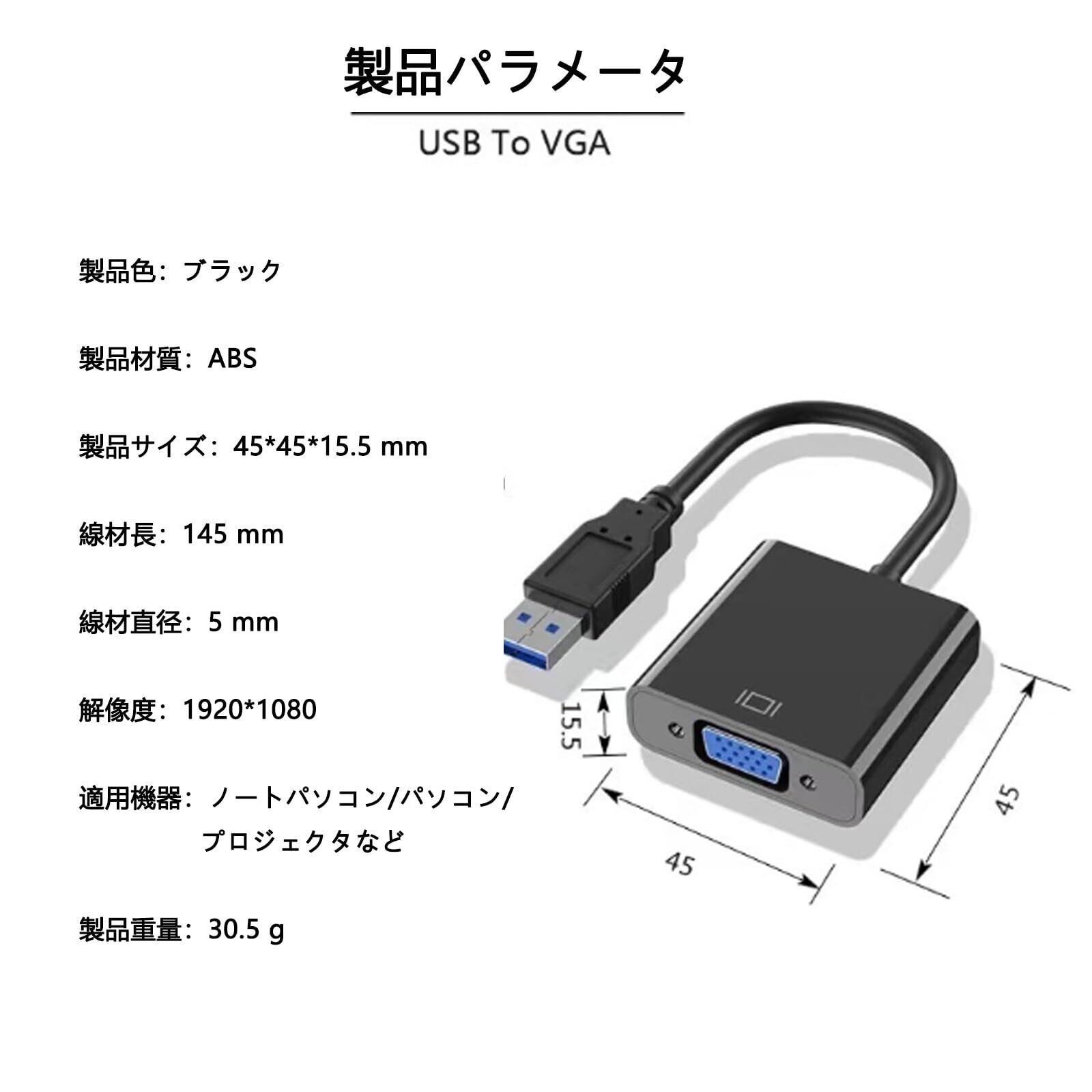 USB3.0 VGA変換アダプタ | 設定不要・簡単操作・1080P画質・マルチディスプレイ対応・USB to VGA変換ケーブル!