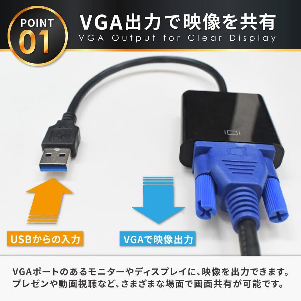 シズカウィル 変換アダプタ 変換アダプター 変換ケーブル VGA変換 高速転送 フルHD Windows 用 MacBook 用 パソコン PC テレビ iPhone 用 アイフォン 用 android 用 アンドロイド 用 iPad 用 タブレット 接続 モニター ミラーリング リモートワーク USB to VGA ブラック 1個入り