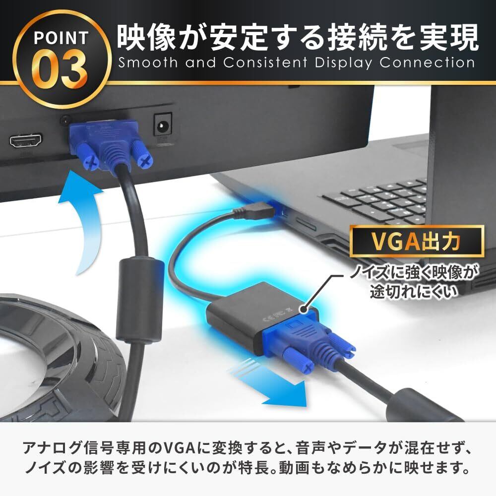 【安定して途切れにくい映像】アナログ専用のVGA変換によりノイズに強く、動画も滑らかに表示