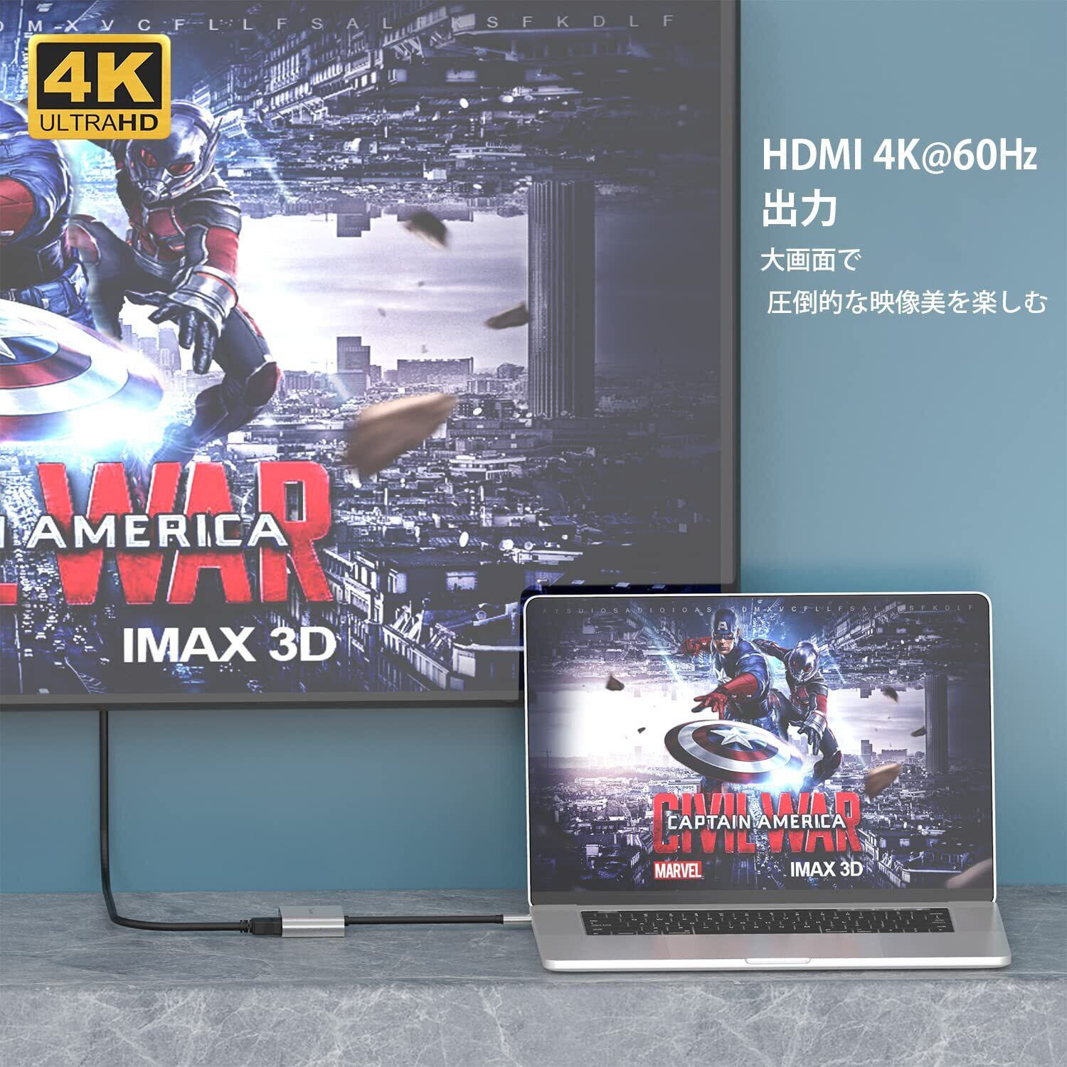 本製品は最大解像度4K@60Hzに対応しており、クリアでシャープな映像を提供します。特にプレゼンテーションや映画鑑賞、ゲームなど、迫力ある映像体験をぜひ実感してください!
