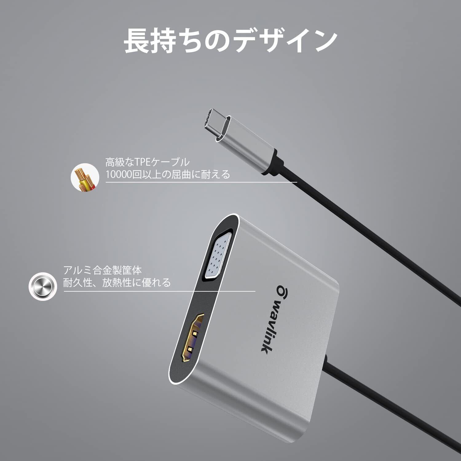 WAVLINK USB C-HDMI VGA 変換アダプタ 4K@60Hzプラグアンドプレイ USB-C-変換ケーブ ル コンバーター ノートパソコン/タブレット/スマホと互換性ある Windows/Mac OS/Linux/iPad OS/Androidに対応 USB-Cポート動画出力サポート必要