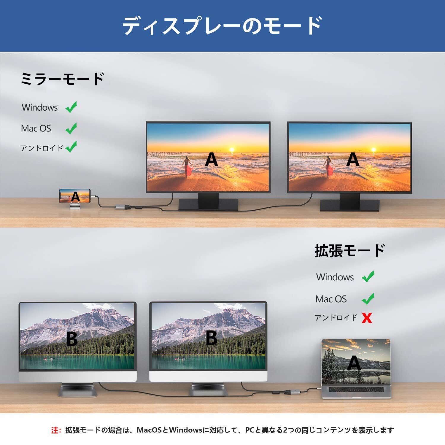 【ミラー&拡張モード】Windows/Mac OS/Linux/IPad OS/Androidを利用する場合、ミラーモードが対応できます。Windows/Mac OSを利用する場合、拡張モードが対応でき、複数のタスクを同時に表示できます。プログラミング、ゲーム、ホームシアター、ビデオ会議、企業トレーニングなどに最適です。