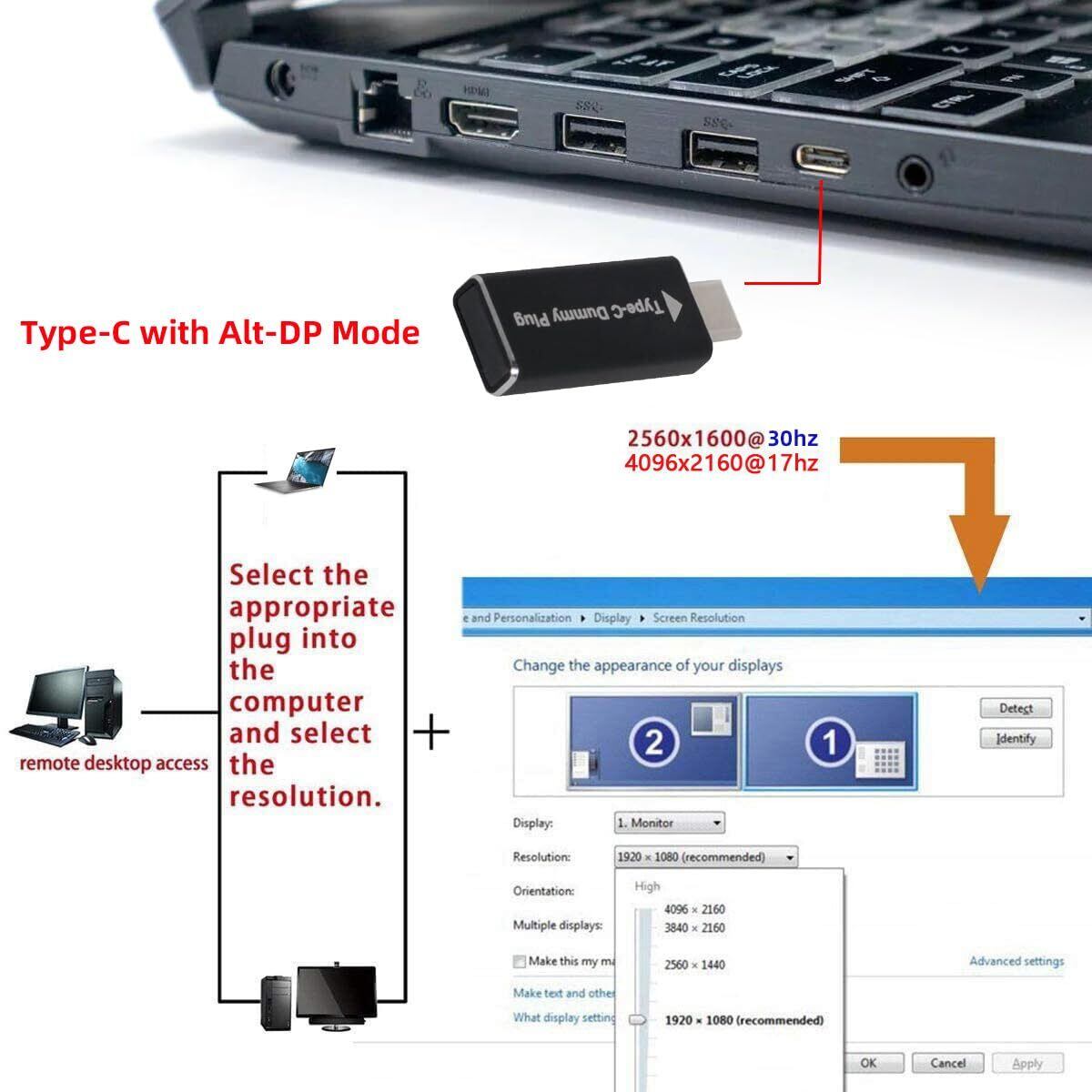 Cablecc CY仮想ディスプレイアダプター | ヘッドレスゴーストディスプレイエミュレータ!1920x1080p @ 60Hz対応