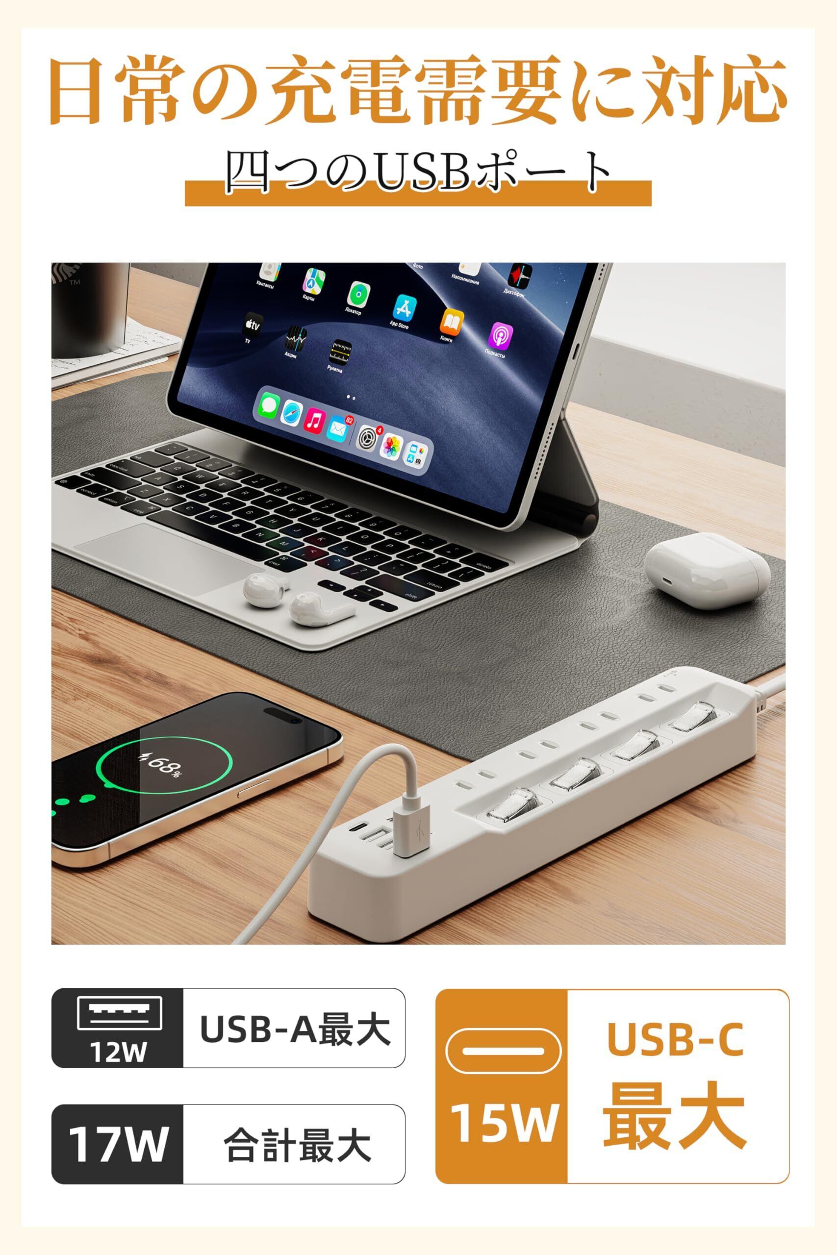 Mscien 電源タップ USB付き 8個AC口 | 多機能延長コードで快適電源管理!