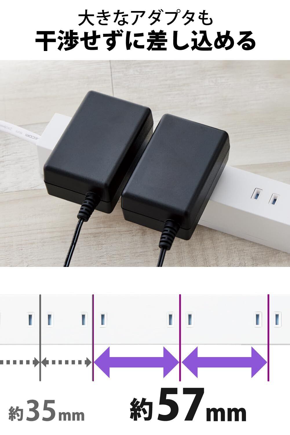 隣の差込口との間隔は57mmが2カ所、35mmが7カ所あり、プラグの形状に合わせて使用できる設計です。間隔が広い差込口には大きなACアダプターなどでも、互いに干渉せずに差し込めます。