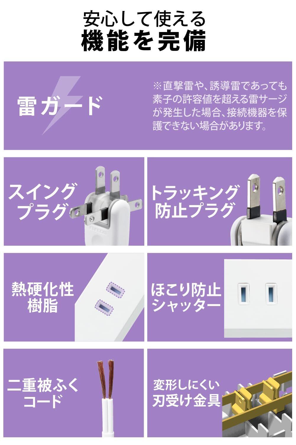 内蔵の雷ガード機能は、雷サージによる機器へのダメージを防ぎます。安全性を重視した設計で、大切な電子機器をしっかり守ります。