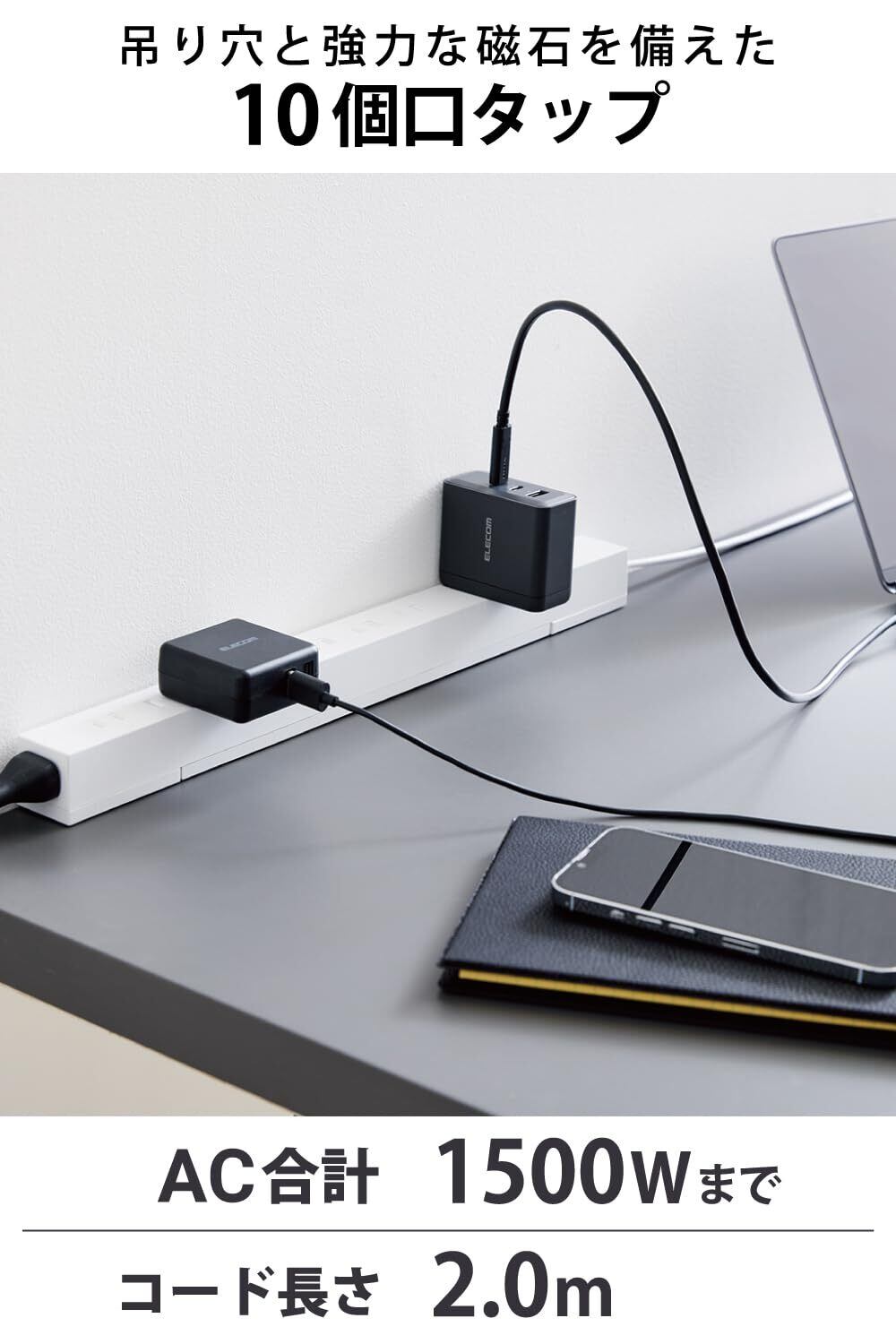 エレコム 電源タップ 10個口 2m 雷ガード【マグネット 回転脚パーツ 吊り穴】スイングプラグ ブラック ECT-2620WH | 多機能デザインでスマートな電源管理!