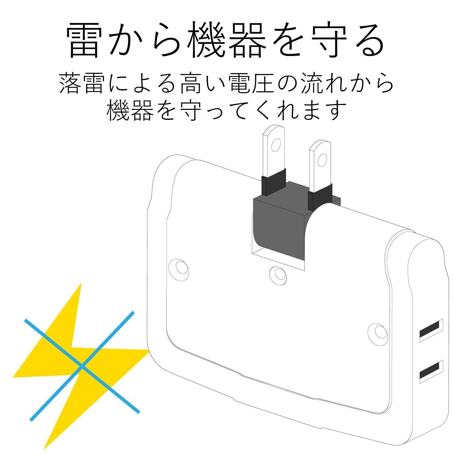 内蔵された雷サージ吸収素子(バリスタ)が大切な機器を雷から守ります。万一の雷によるダメージを心配する必要はなく、安心してご使用いただけます。