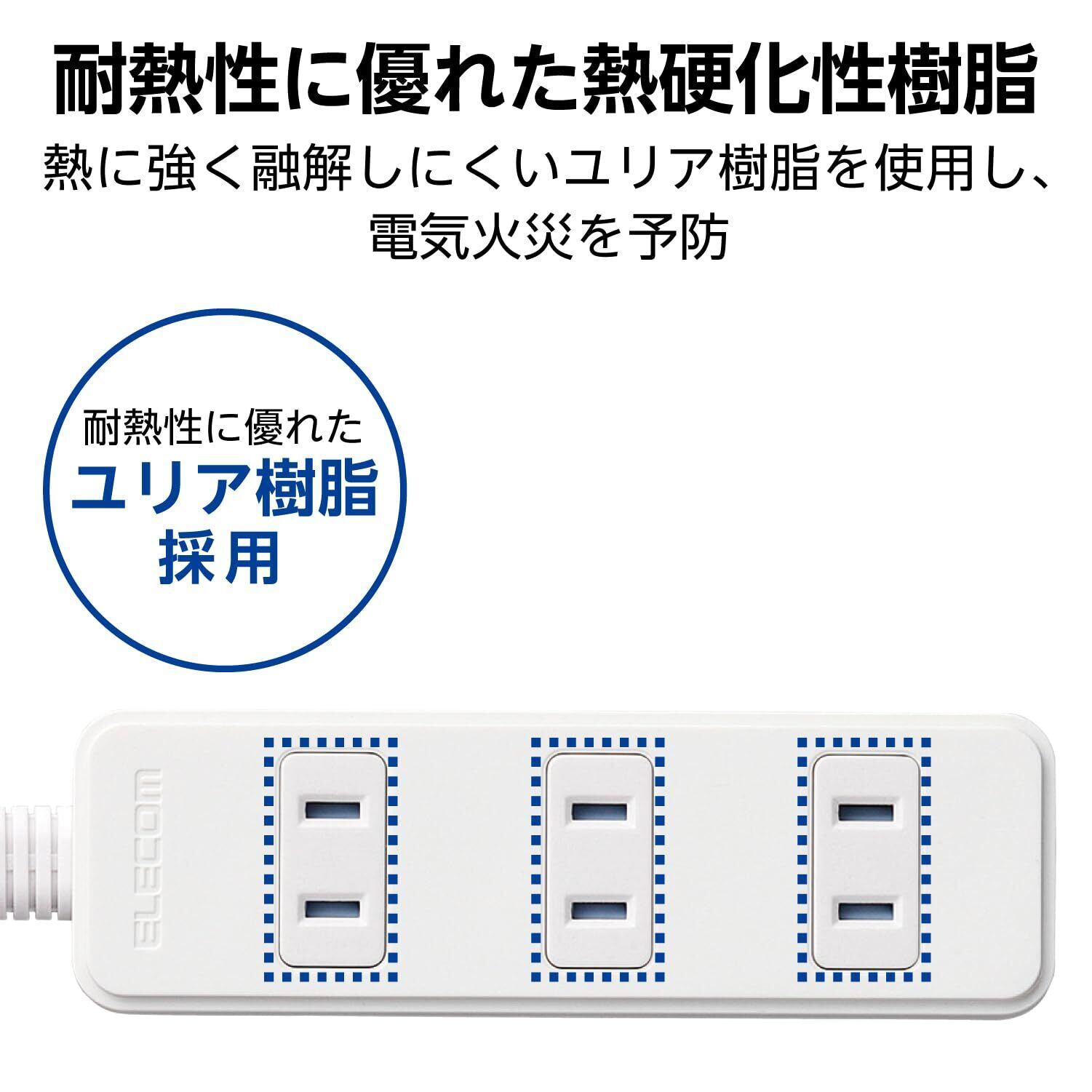 差込口には耐熱性に優れたユリア樹脂を使用しており、万一の発熱の際にも融解しにくく、電気火災の防止に有効です。