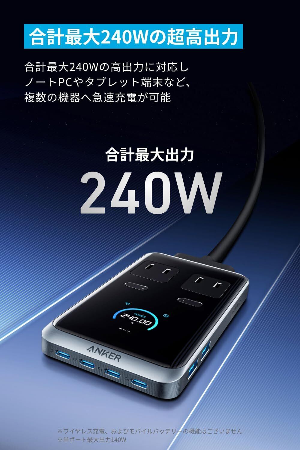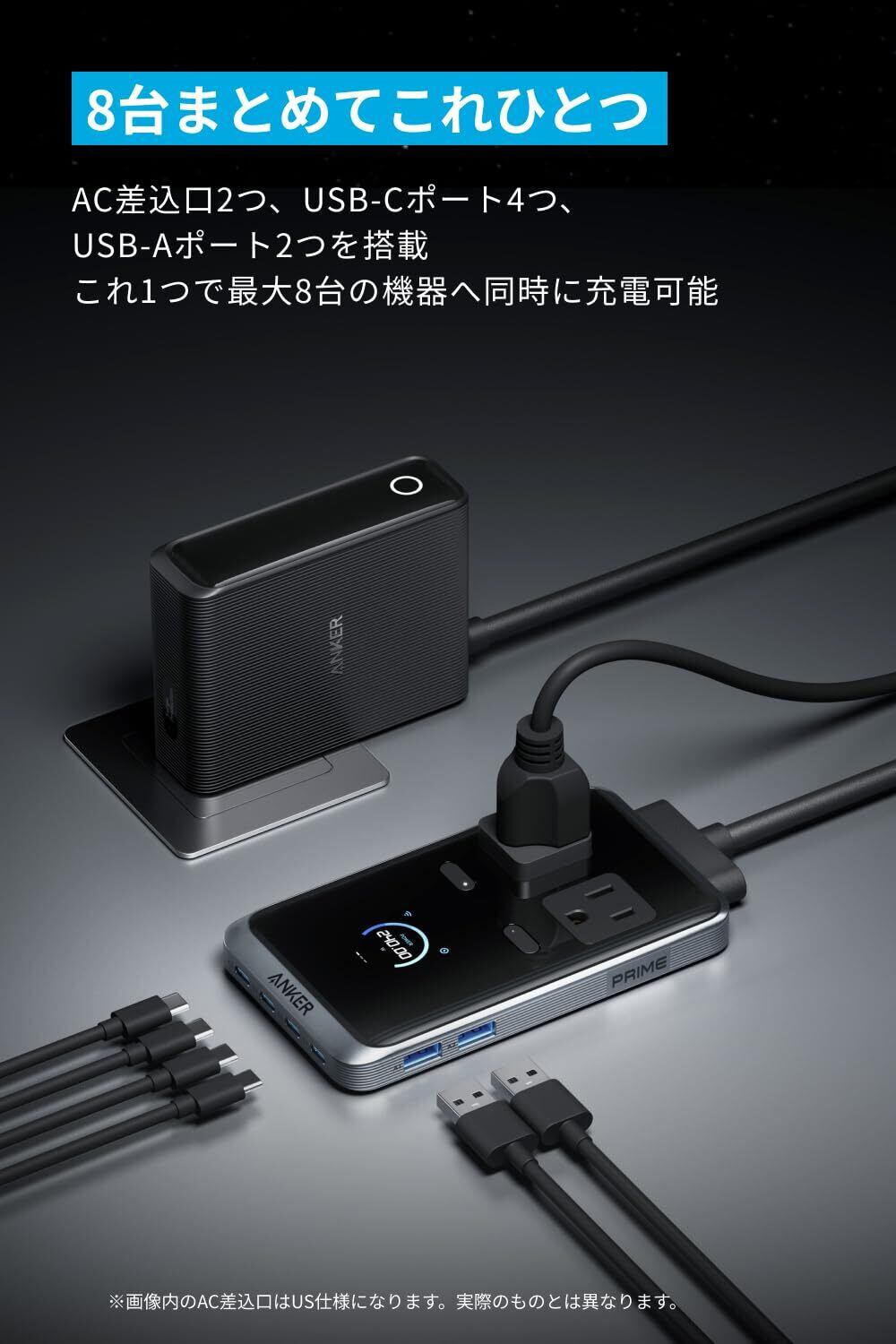 Anker Prime Charging Station (8-in-1, 240W) 【据え置き型/独自技術Anker GaNPrime採用/コンセント差込口 2口 / USB-C 4ポート / USB-A 2ポート / PSE技術基準適合】iPhone Galaxy Android スマートフォン MacBook ノートPC 各種 その他機器対応