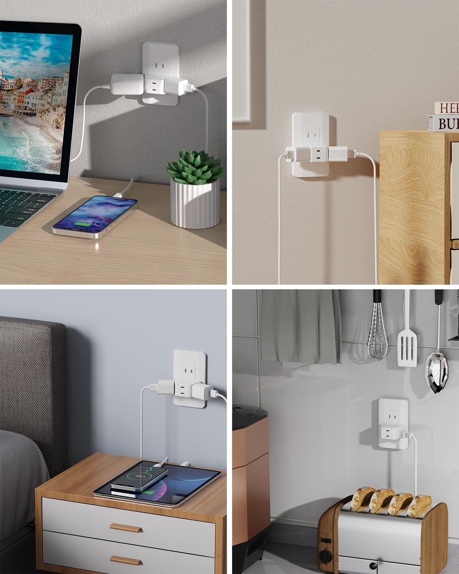 【干渉せず・たこ足コンセント】隣接プラグの干渉を解消多方向分岐デザインで、大型充電器もスムーズに接続。壁面に密着する安定設計で、抜き差しもラクラク。