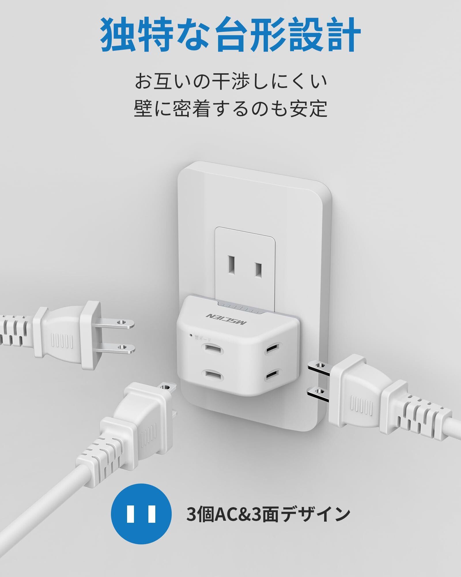コンセントタップ 1個セット エムサインMscien 電源タップ コンセント 3口 たこあしコンセント 雷ガード マルチタップ タコ足配線 タコ足コンセント コンパクト