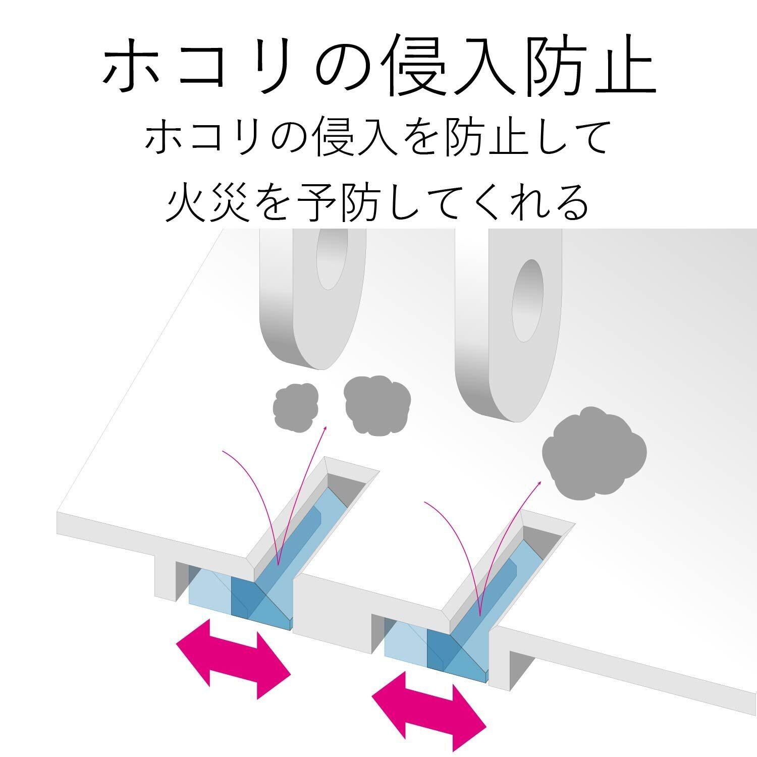 ■未使用時の差込口へのほこりの浸入を防止するほこり防止シャッターを装備しています。お子様のいたずらによる感電・火災の防止に役立ちます。