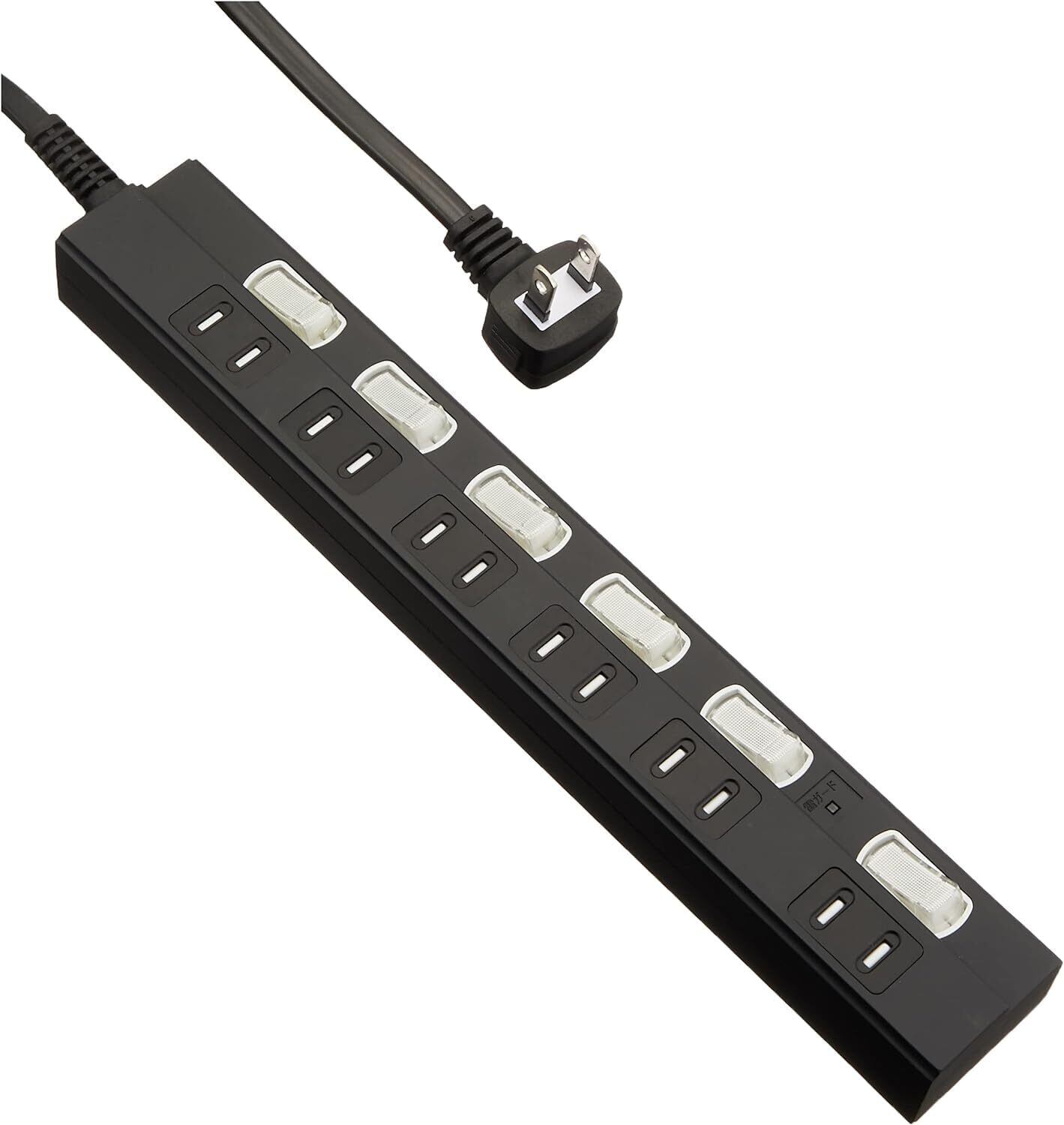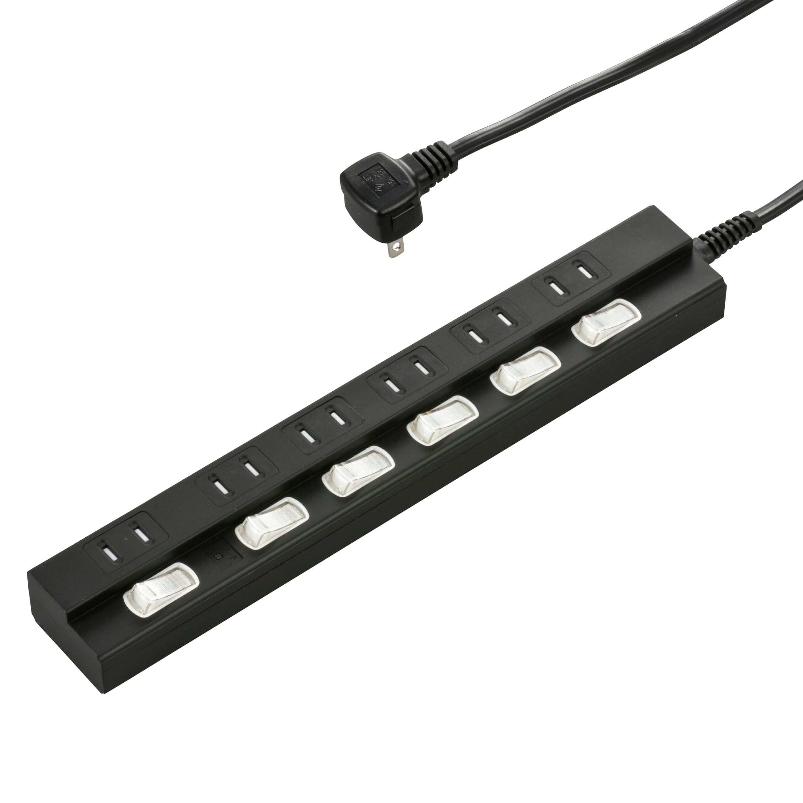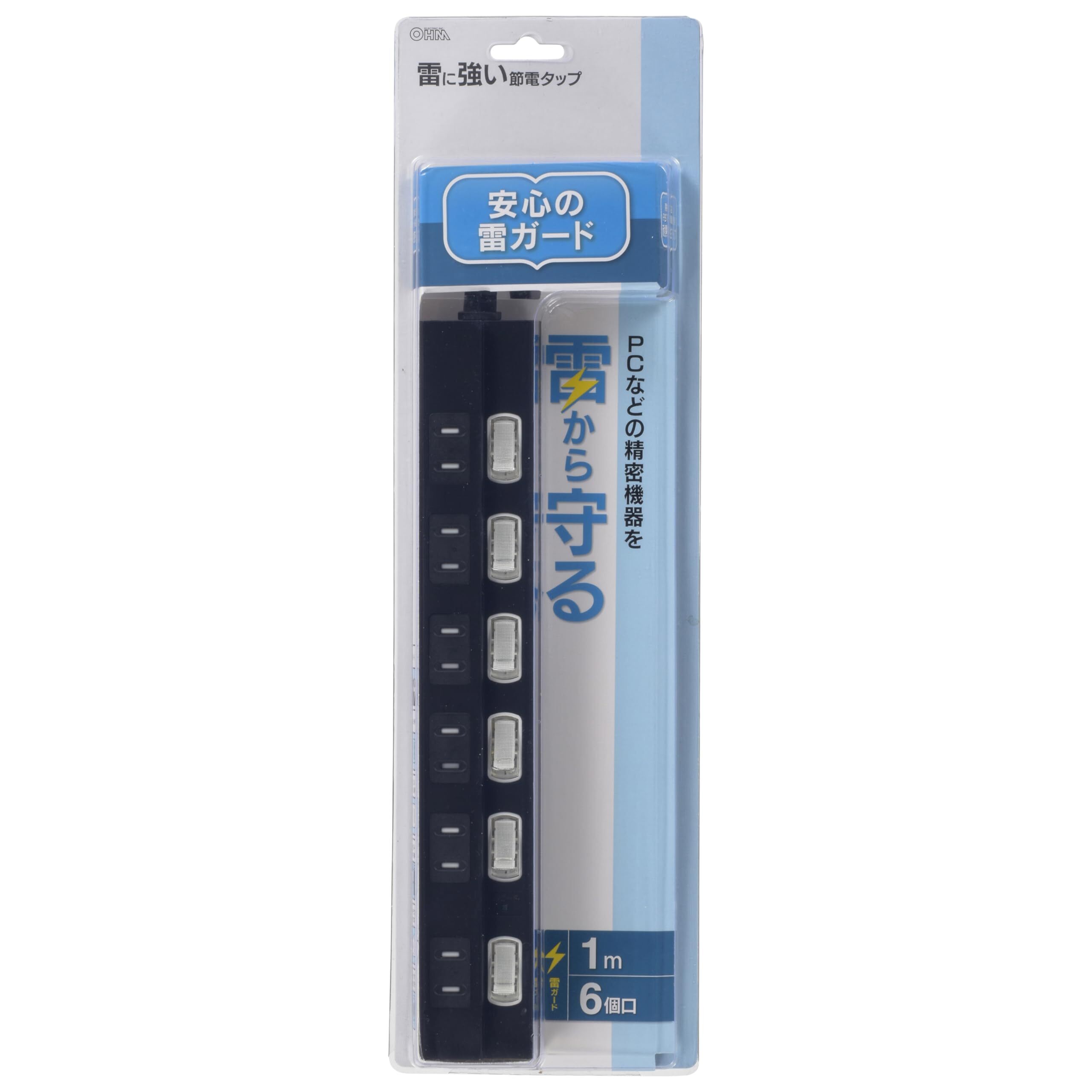雷に強い節電タップ 6個口 1m 黒_HS-TPK61PBT-K 00-6944 | 安全で便利な電源管理タップ!