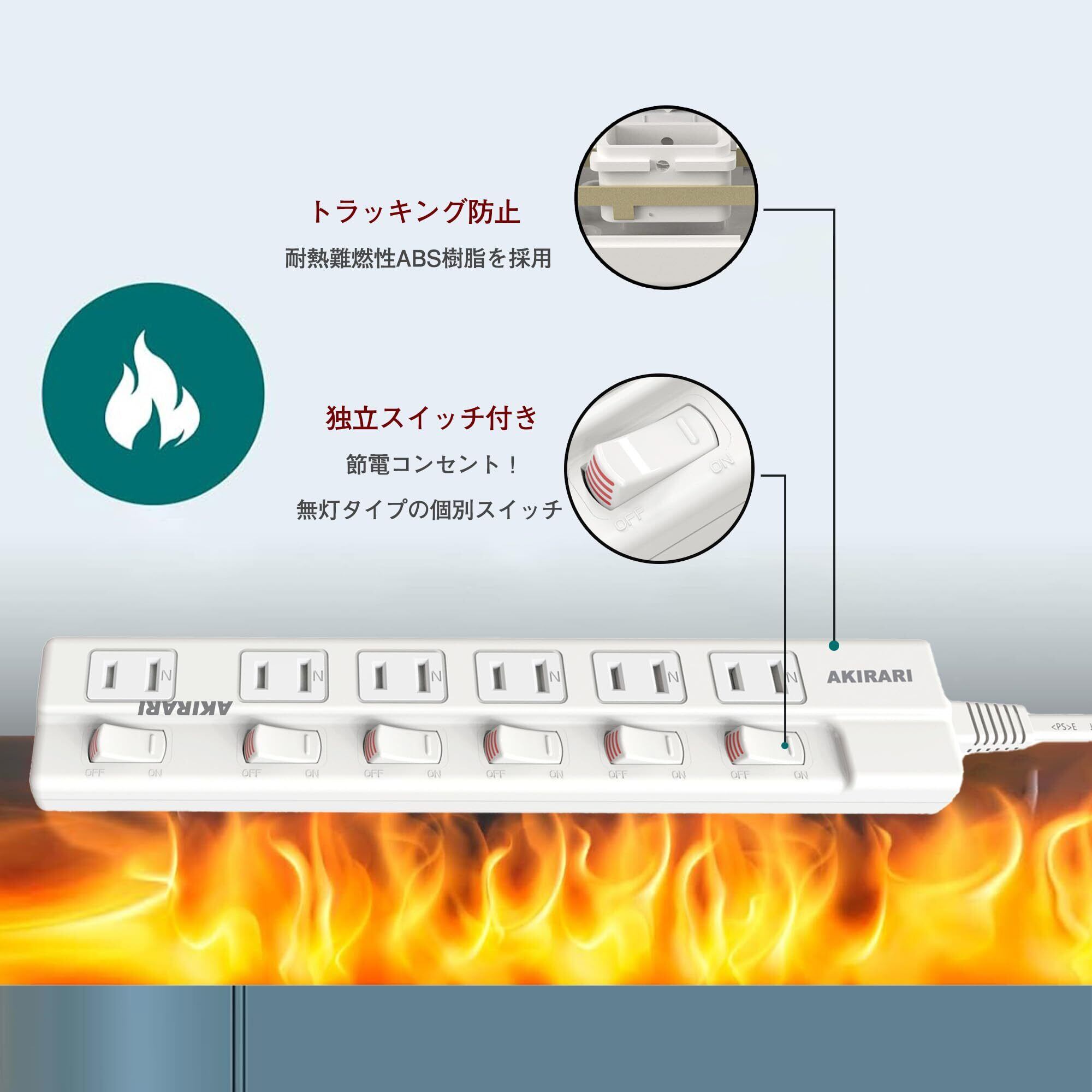 防塵防雷 個別スイッチ 電源タップ 6口 AKIRARI | 安全と便利さを兼ね備えた、スタイリッシュな電源タップ!