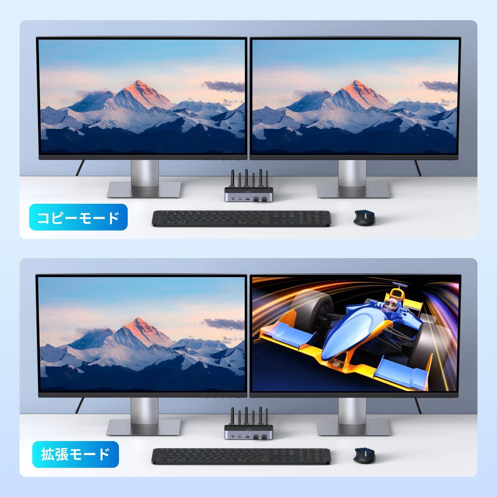 【KVM切替器 2モニタ 2コンピュータ】: このKVM切替器を使用すると、1組のキーボードとマウスだけで2台のコンピュータを簡単に管理・切り替えでき、同時に2台のモニタを制御できます。拡張モードとミラーモードをサポートします。ソフトウェアのインストールやドライバ不要のプラグアンドプレイ。この切り替え機は、プロフェッショナルとホームオフィスの両方のセットアップに最適です。