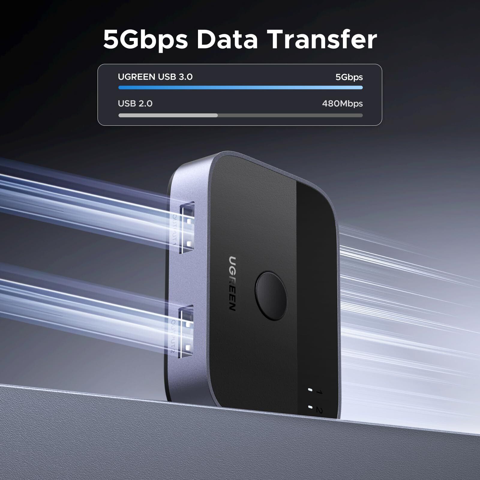 UGREEN USB3.0切替器 2入力2出力 USB切替機 2PCでキーボード/マウス/プリンタ/スキャナ/Webカメラなどを共有、2台のPC用プリンタ切替機、2*USBポート切り替え機 2本USBケーブル付き