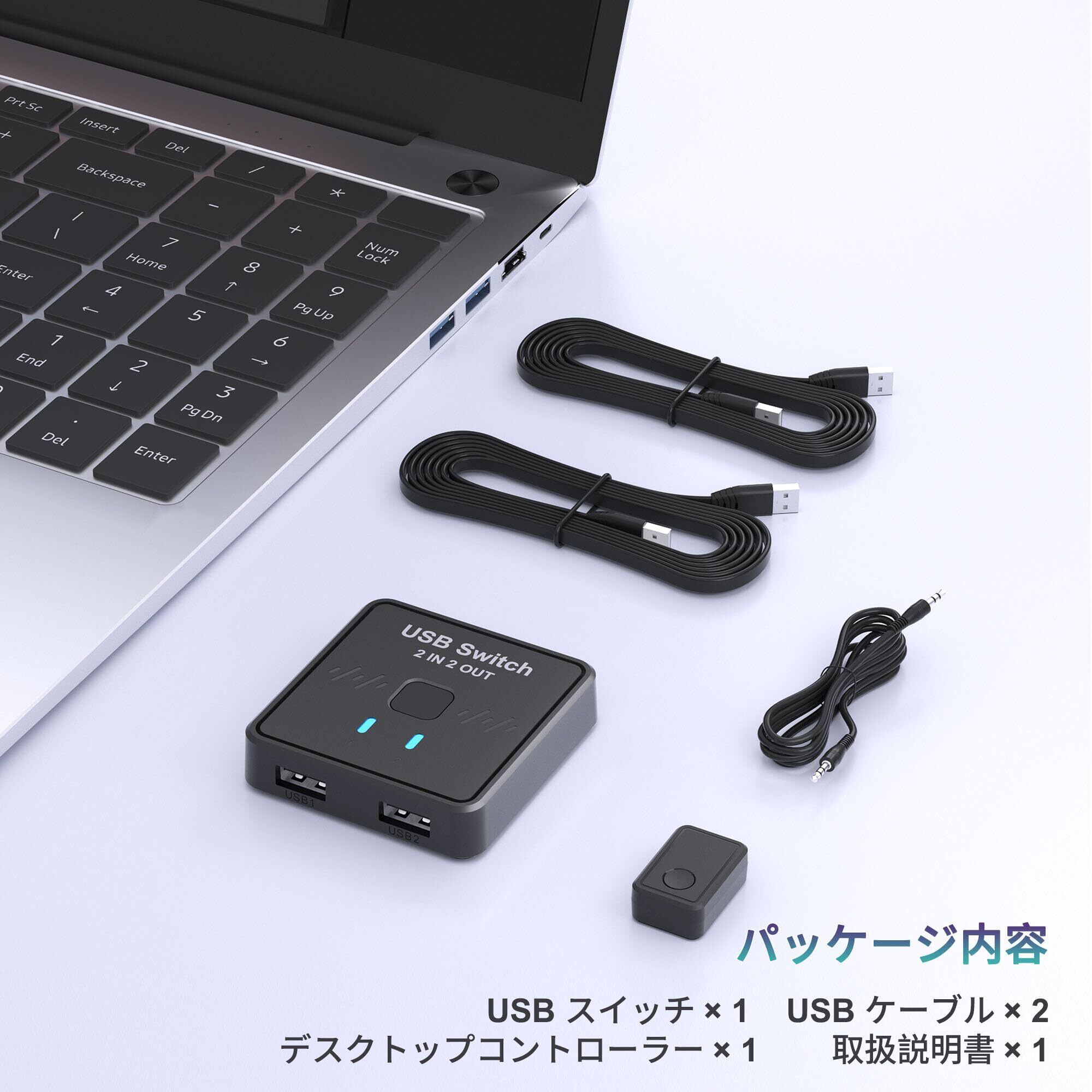 USB 切替器 2入力2出力 USB-A切り替え器 2台PCでキーボード/マウス/プリンタ/スキャナ/Webカメラなどを共有 2本のUSBケーブル付き