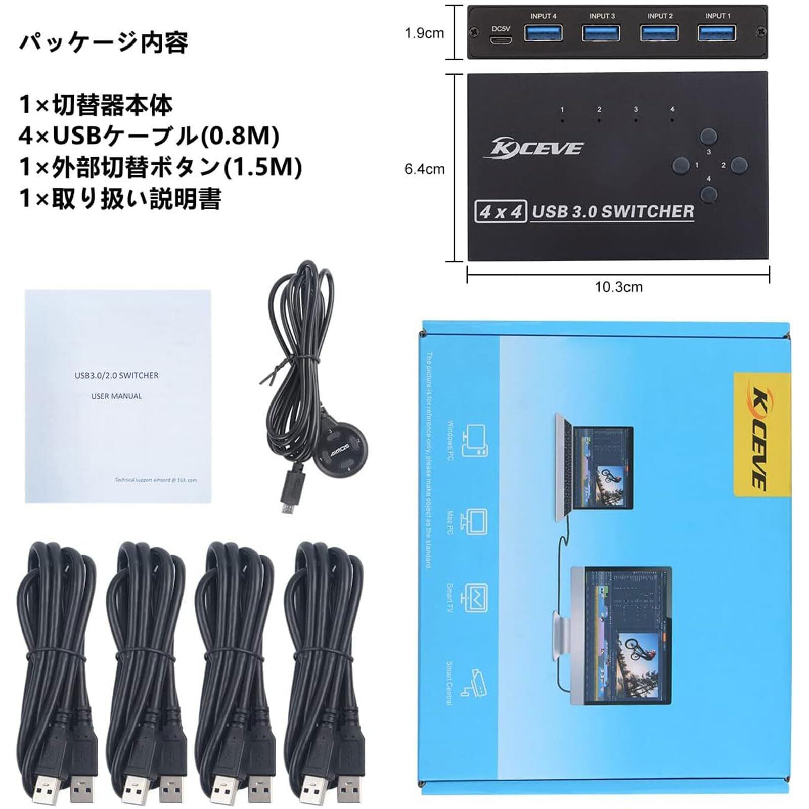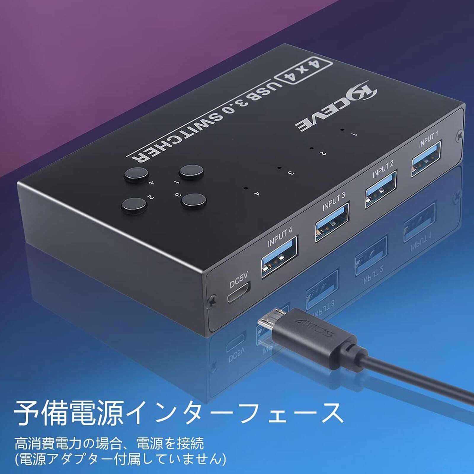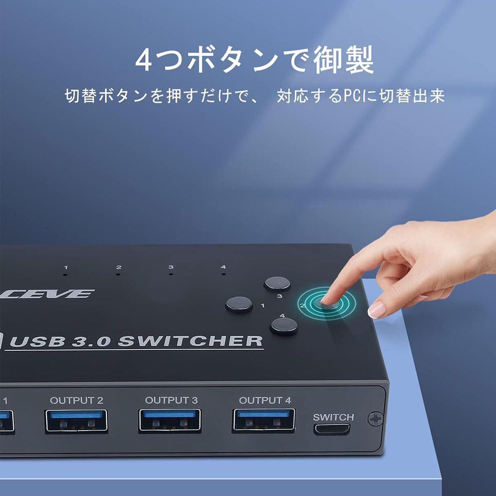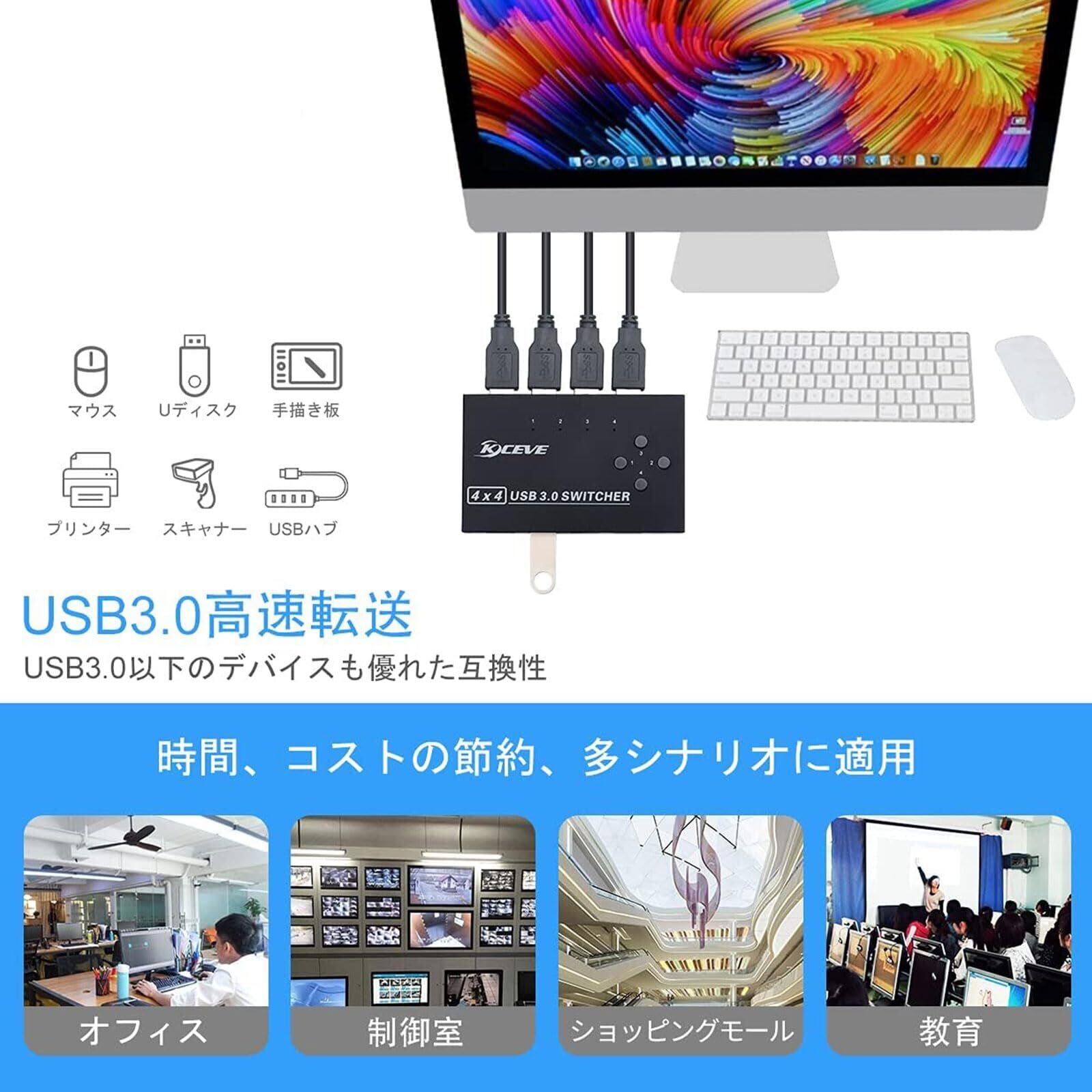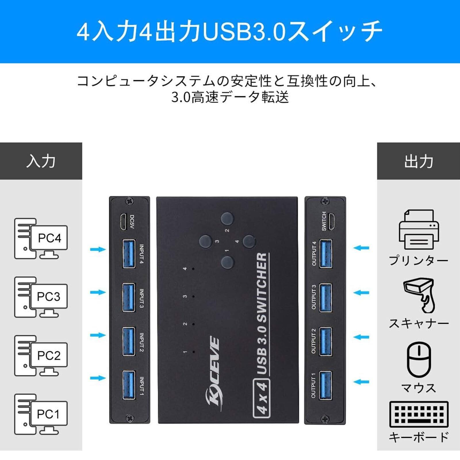 KCEVE USB切替器3.0、USB切り替え機4入力4出力5Gbps高速転送、手動切替器PC4台用、共有4USBデバイス、USB切替器ハブ、マウス、キーボード、スキャナー、プリンターなどサポート