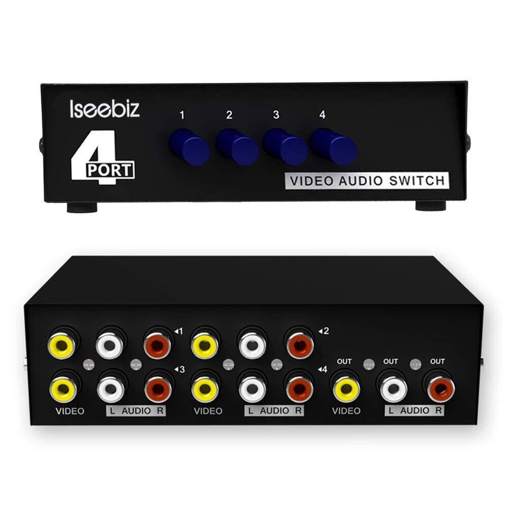 Iseebiz AVセレクター RCA切替器 4入力1出力/1入力4出力 双方向対応 電源不要 金属外殻 オーディオ・ビデオセレクター ビデオデッキ/DVD/レトロゲーム機対応 干渉防止