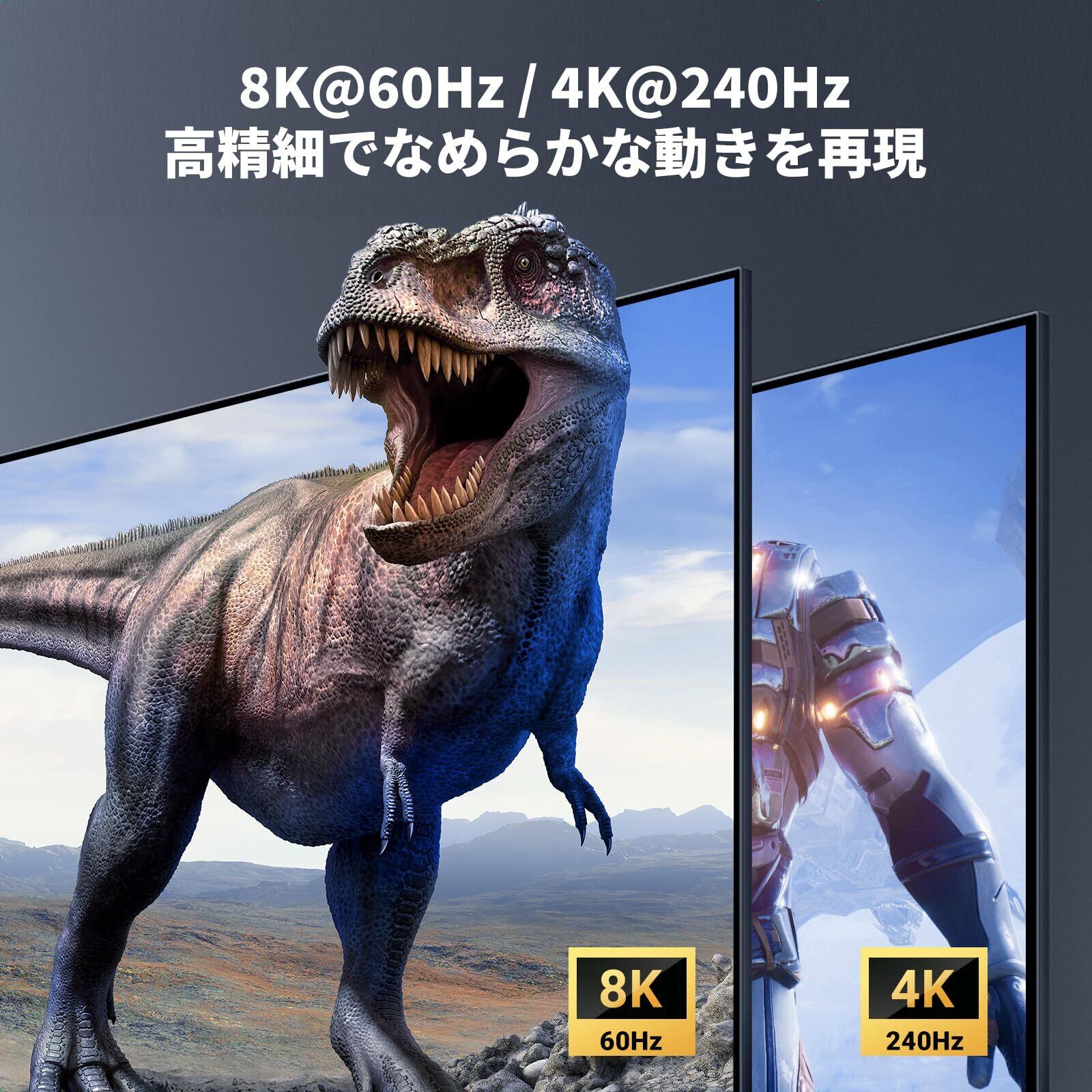 最大解像度8K@60Hzおよび4K@240Hzの解像度をサポートするため、クリエイティブな作業や高画質なゲームを楽しむ際にも非常に効果的です。映像の遅延が少なく、滑らかな動作を実現しています。
