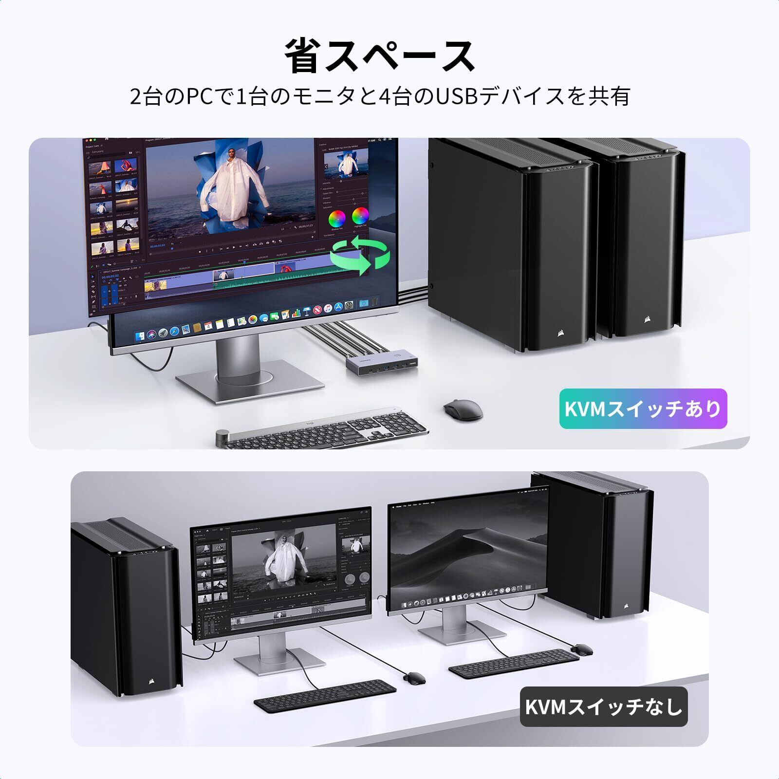 UGREEN 8K@60Hz HDMI KVM切替器 | 2入力1出力でPC2台とモニター1台を手軽に共有!