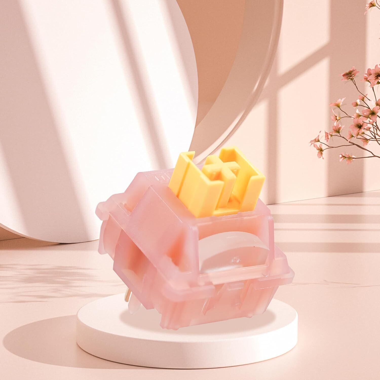 特徴:V1、V2バージョンと比較し、V3は安定性を高めるため5ピン構造を採用。またOutemuは工場潤滑プロセスを改良し信頼性を向上させました。静粛性と滑らかさを両立するスイッチをお探しなら、ハニーピーチV3スイッチが最適です。