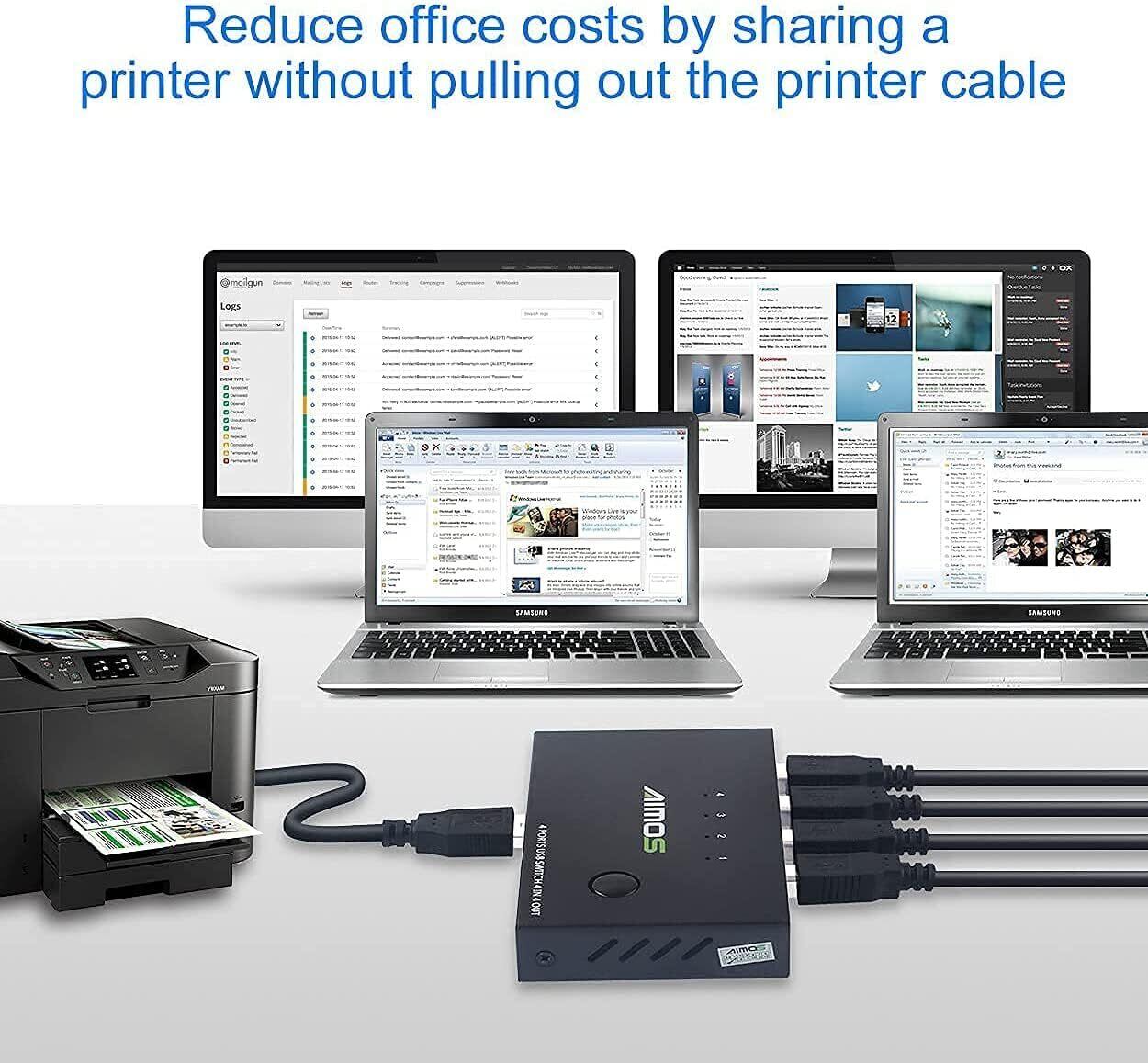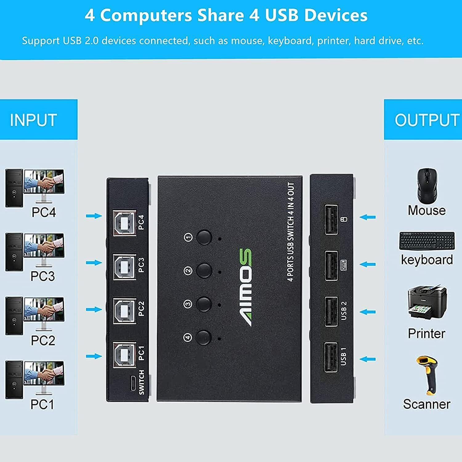 USBスイッチ 4台のコンピュータ、4台のUSBデバイスを共有する4ポートUSBスイッチセレクター | キーボードマウススイッチ!