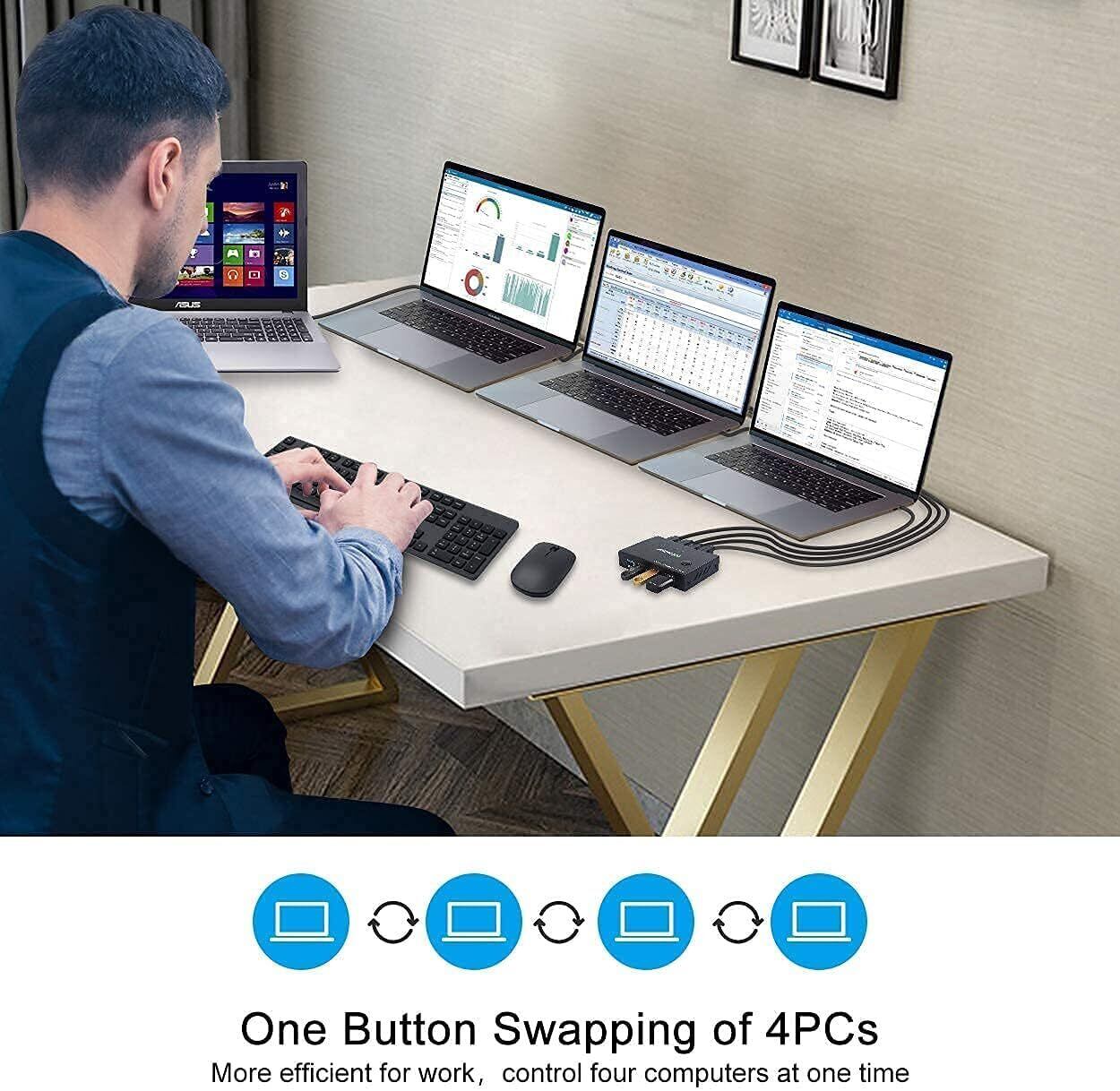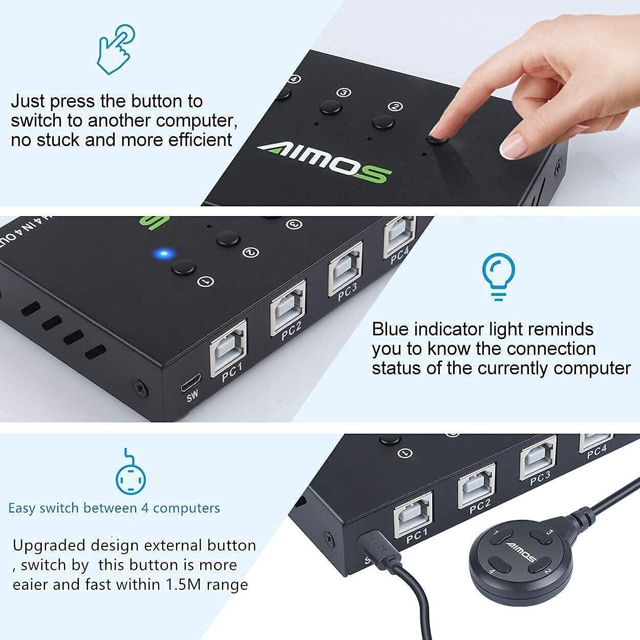 USBスイッチ 4台のコンピュータ、4台のUSBデバイスを共有する4ポートUSBスイッチセレクター、キーボードマウススイッチ、Mac/Windows/Linuxと互換性のあるUSBスイッチャー、有線リモートと4本のUSBケーブルが付属