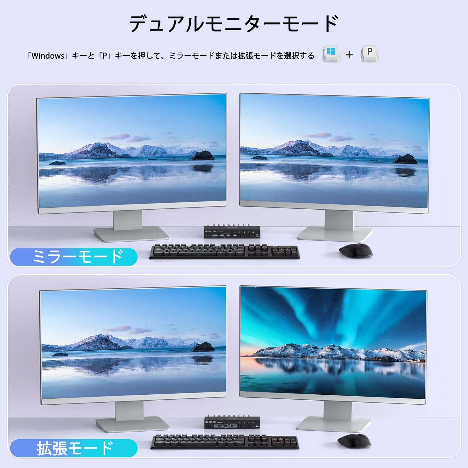 【ミラーモード・拡張モードをサポート】ミラーモードでは、メイン画面をサブ画面にコピーできます。拡張モードでは、メイン画面からサブ画面にウィンドウをドラッグできます。「Windows」キーと「P」キーを押して、ミラーモードまたは拡張モードを選択できます。