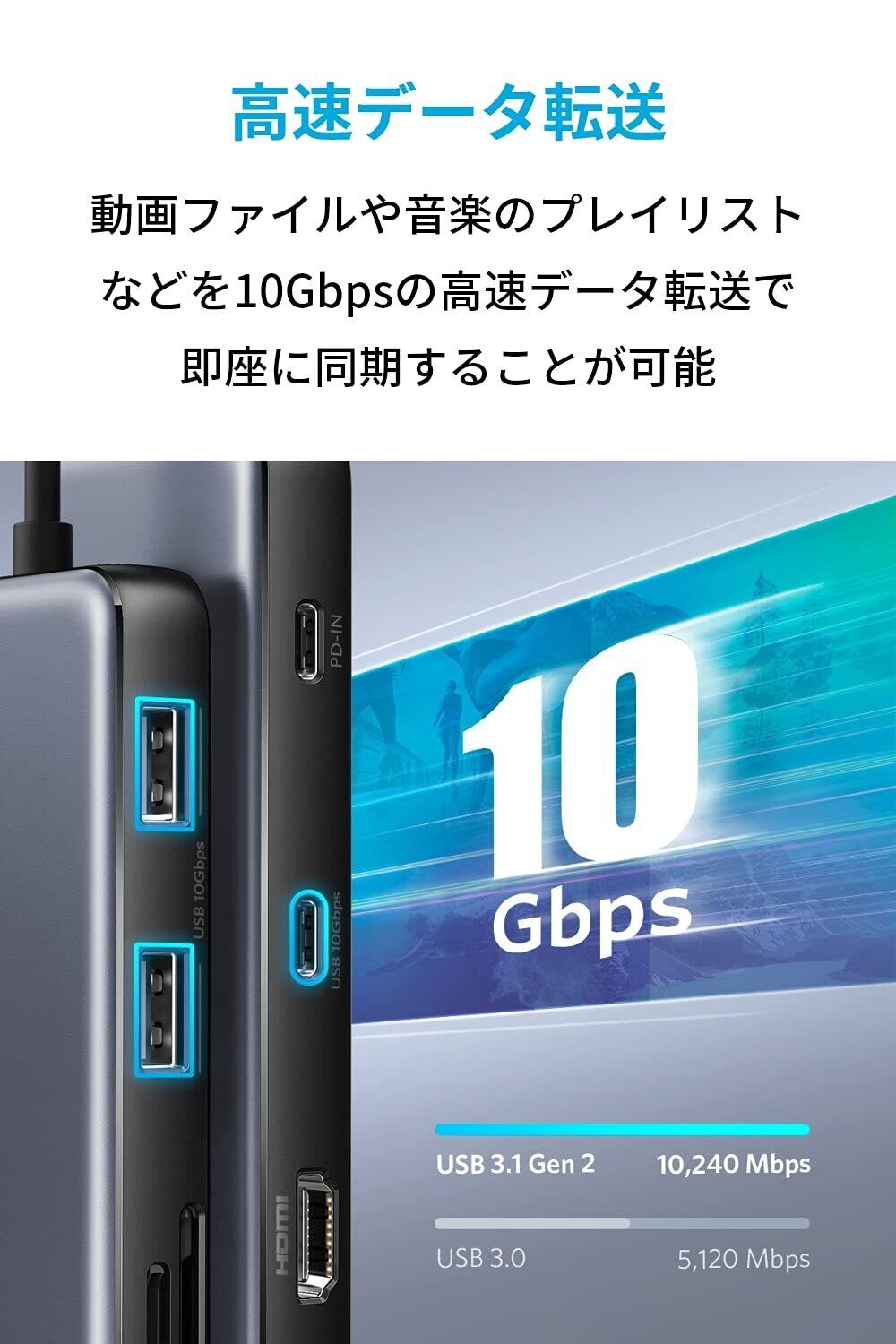 Anker PowerExpand 8-in-1 USB-C PD 10Gbps データ ハブ 100W USB Power Delivery 対応 USB-Cポート 4K (60Hz) 出力対応 HDMIポート 10Gbps 高速データ転送 USB-Cポート USB-Aポート 1Gbps イーサネット microSD&SDカード スロット搭載 MacBook Pro iPad Pro対応