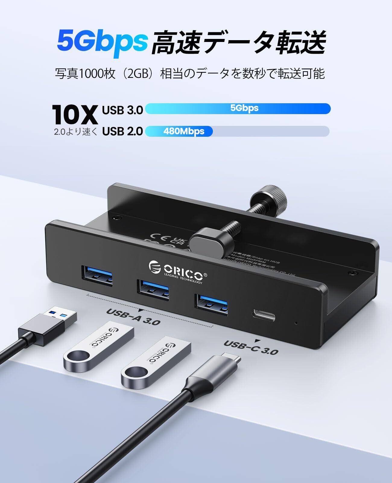 「ORICO USB C ハブ クランプ」は、あなたのデジタル環境を快適にするために設計された、機能満載のUSBハブです!4つのUSB 3.0ポートを備えたこのハブは、高速5Gbpsのデータ転送をサポートし、さまざまなデバイスとの接続を簡単に実現します。デザインはシンプルでありながら、クリップ式の取り付けでデスク周りをスッキリ保てます。