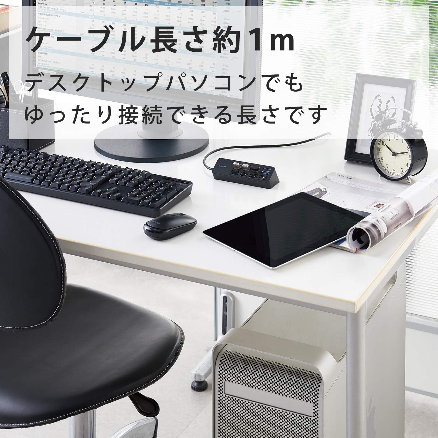 ■ ケーブルは紛失の心配がない直付けタイプで、デスクトップパソコンでもゆったり接続できる約1mの長さです。