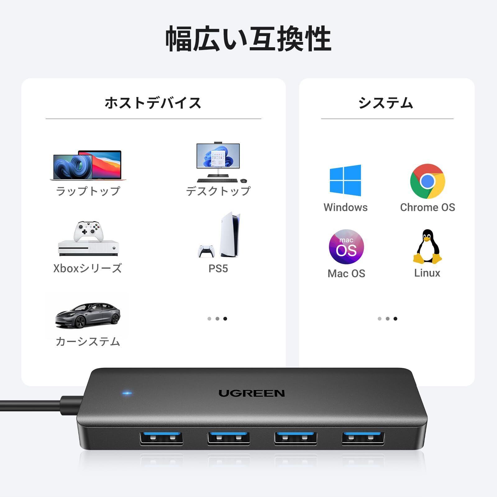 UGREEN USB ハブ USB3.0 4ポートUSB A ハブ 5Gbps高速転送 スリム軽量ハブ 4in1 MacBook/iMac/Surface Proに対応 ノートPC適用 Mac OS/Windows/Chromebook/Linux/PS4/PS5対応 (4A-15CM)