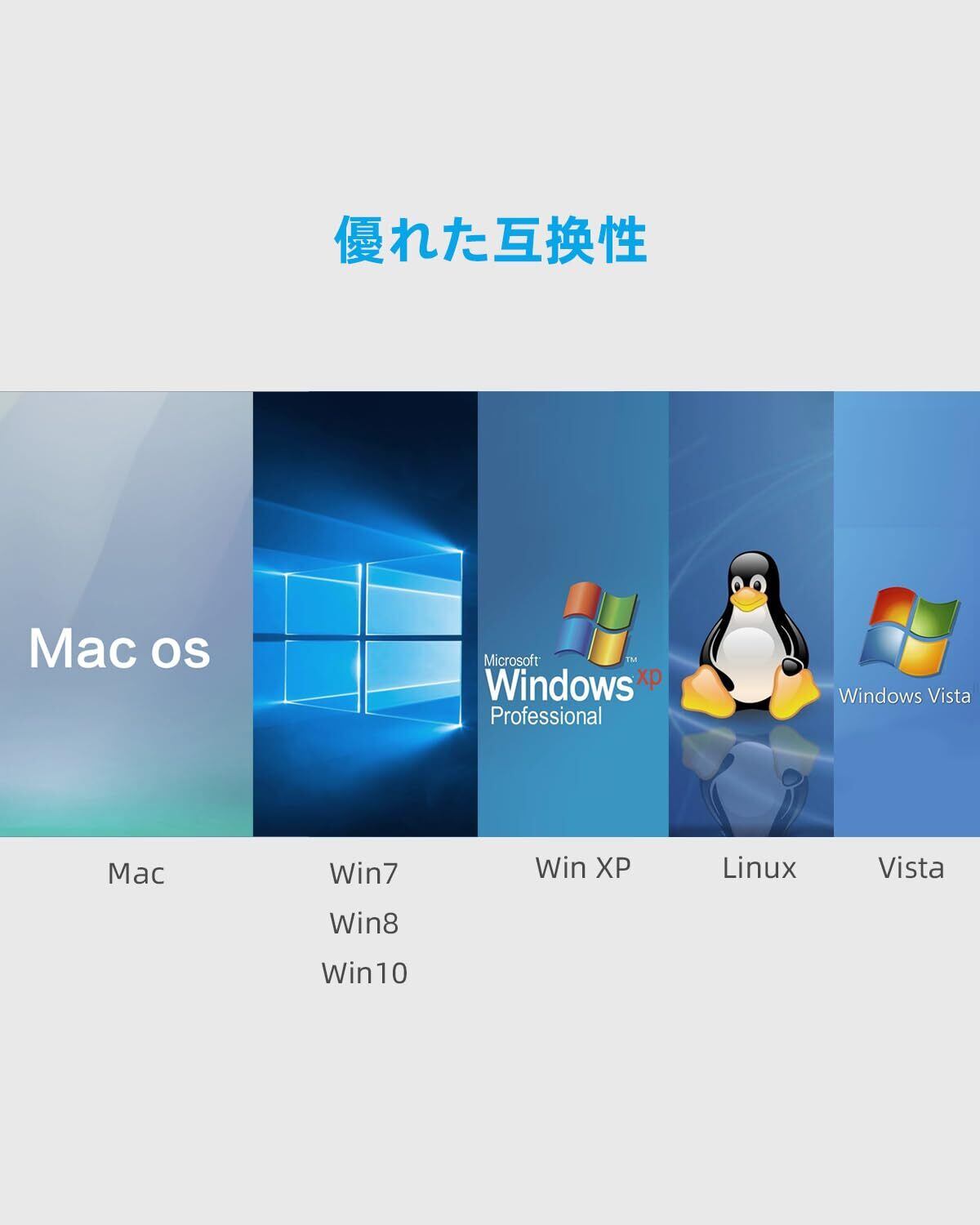Windows、Mac、Linuxなど多くのオペレーティングシステムに対応しており、特別な設定なしで即使用可能。Plug and Play機能で、自宅でもオフィスでもすぐに使い始められます。