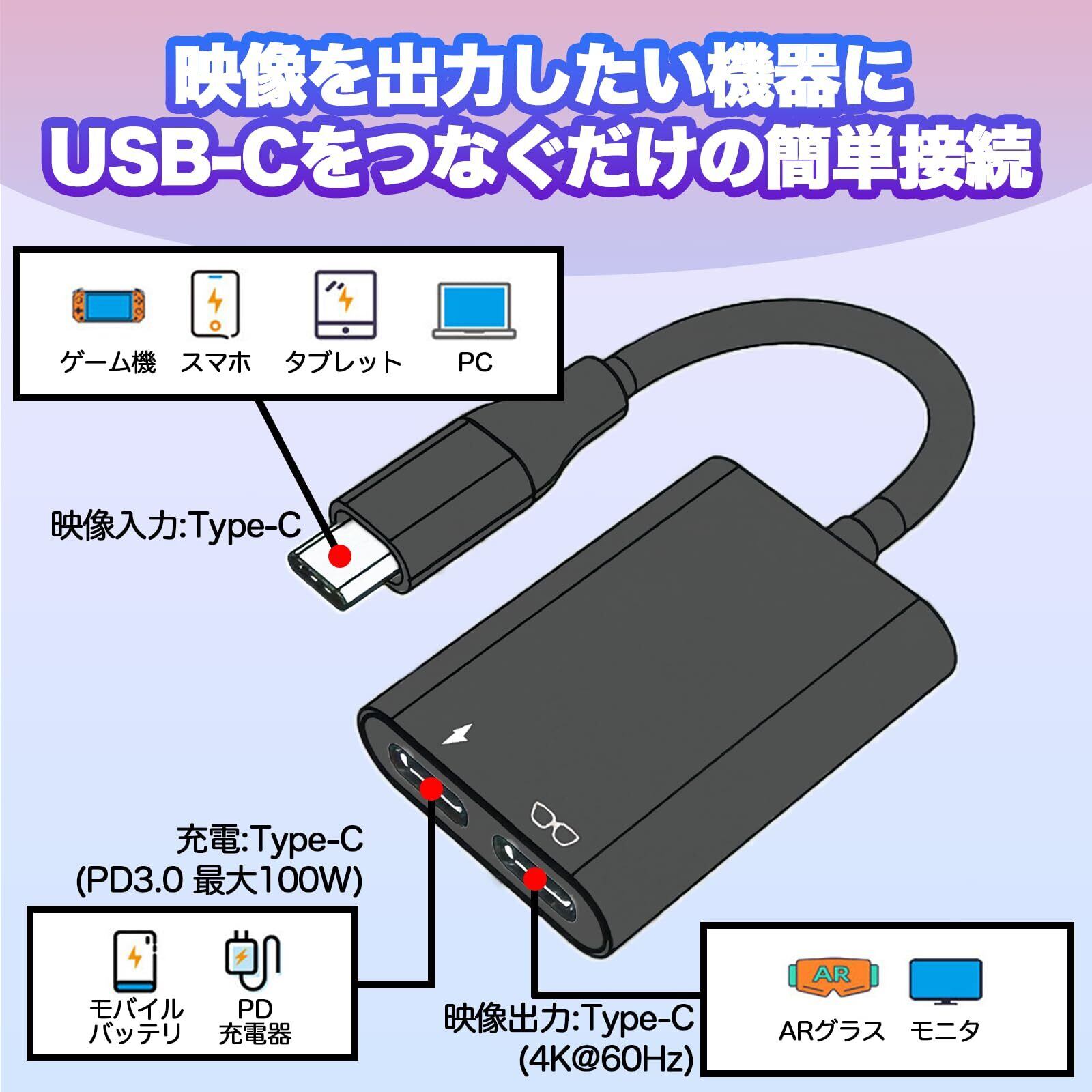 XREAL ONE PRO などのARグラスで スマホやSwitch を充電しながら使えるUSB-Cハブ 【4K@60Hz +PD100W】 (グレー)