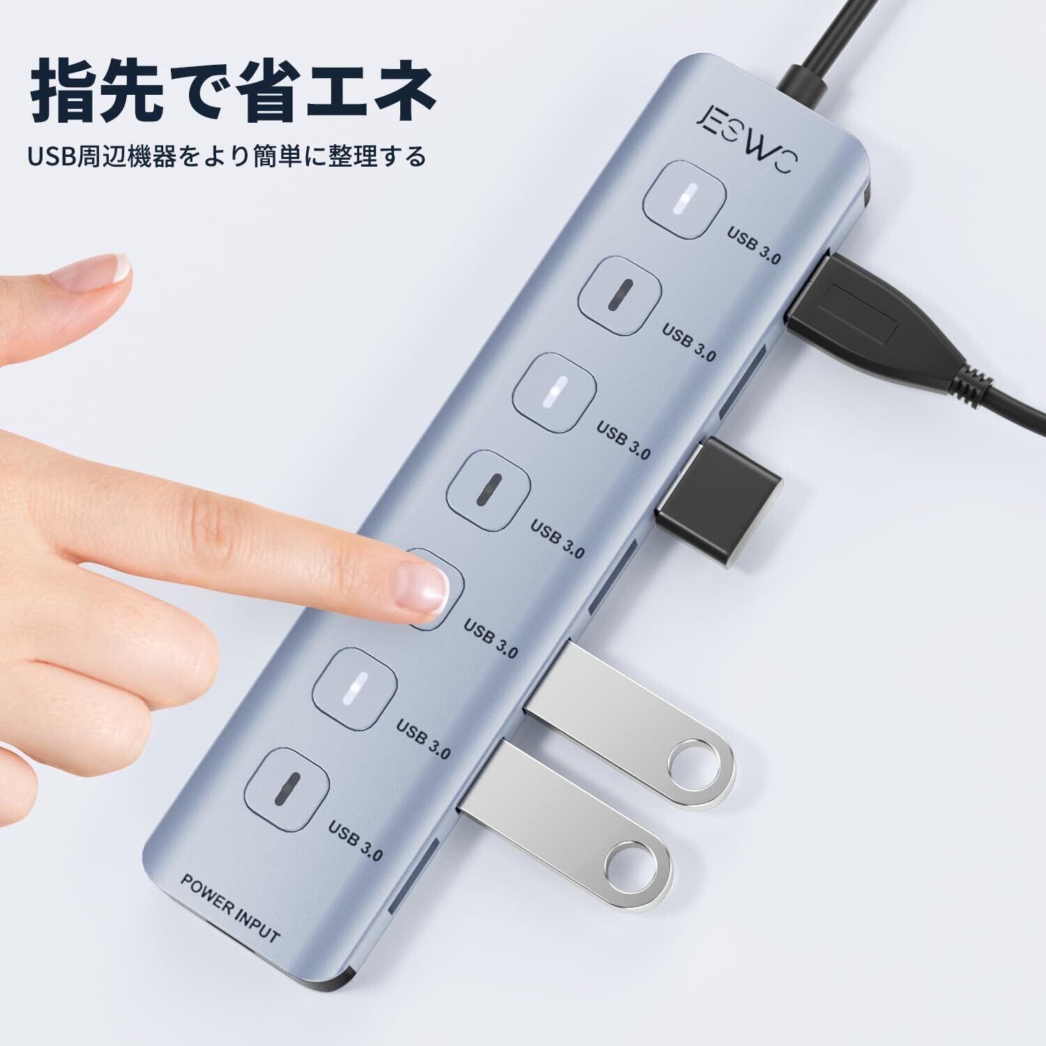 各ポートに独立したスイッチを搭載し、使用しないポートをオフにすることで省エネを実現。接続中のデバイスを選択的に管理でき、効率的に作業を進めることが可能です!