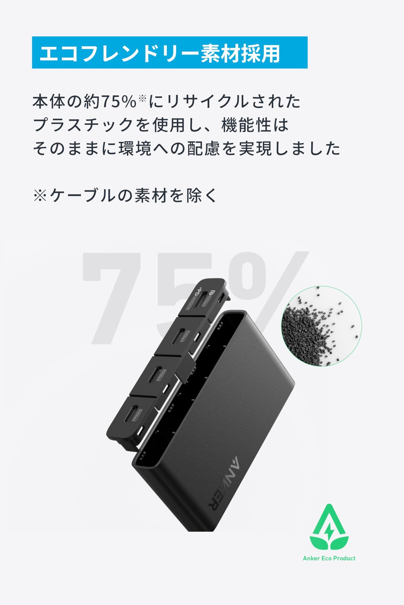 エコフレンドリー素材採用:本体の約75%にリサイクルされたプラスチックを使用し、機能性はそのままに環境への配慮を実現しました。(※ケーブルの素材を除く)