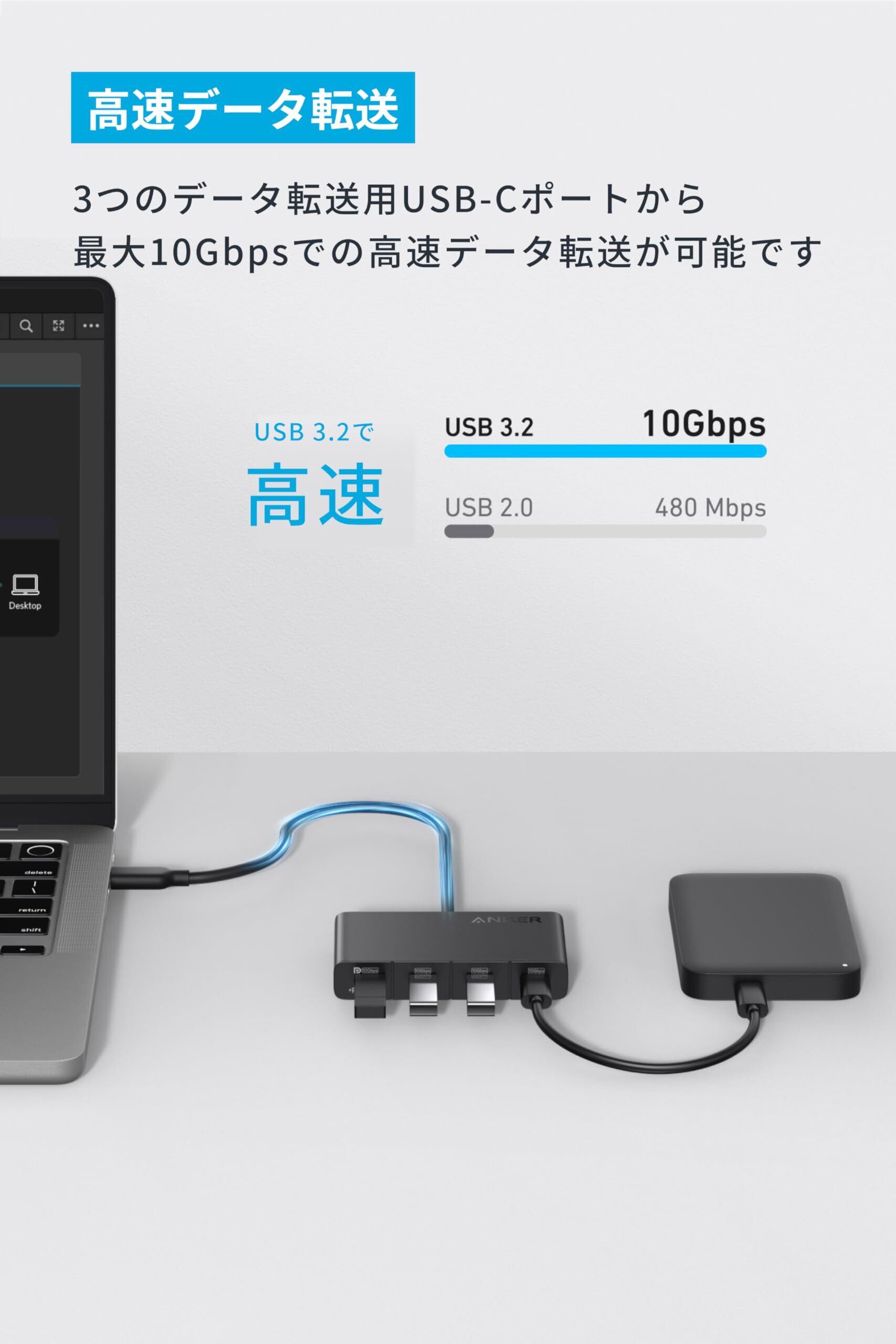 Anker USB-C ハブ (4-in-1, 10Gbps) 100W USB PD対応 10Gbps 高速データ転送USB-Cポート搭載 MacBook Pro/iPad/iPhone 16 / 15 / Surface Pro/Dell 他対応