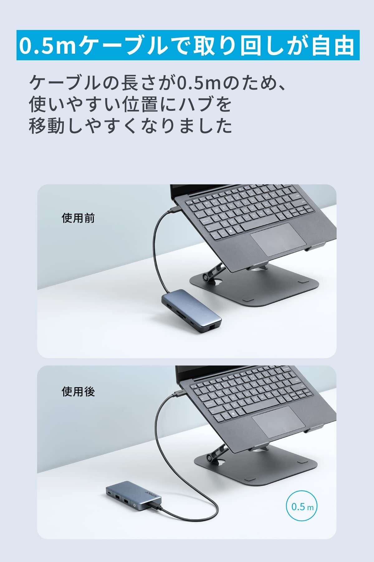 約50cmの着脱式ケーブルが付属しており、収納や持ち運びに便利です。これにより、デスク周りをすっきりと保つことができ、スペースの有効活用ができます。
